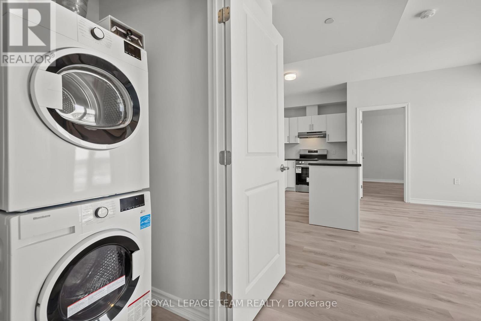 Welcome to elevated condo living in the heart of Wateridge Village. This west-facing 2-bedroom, 2-bathroom suite by Mattamy Homes offers the perfect blend of modern finishes and everyday functionality - just a short drive to downtown Ottawa. Designed with comfort in mind, the open-concept layout features a sleek white kitchen complete with stainless steel appliances and ample cabinetry, flowing seamlessly into the sun-filled living and dining space. Durable luxury vinyl flooring adds both style and practicality. The primary retreat includes a generous walk-in closet and private 3-piece ensuite, while the second bedroom provides flexibility for guests, a workspace, or additional living needs. Enjoy golden-hour views from your private west-facing balcony overlooking the park, plus the convenience of in-unit laundry and heated underground parking. Residents also benefit from access to a party room, outdoor green space, playground, and BBQ area - perfect for relaxing or entertaining. Surrounded by parks, walking paths, transit, and everyday amenities, this is low-maintenance living in a thriving, connected community. Underground Parking #175. Tenant pays hydro only! (id:49063)