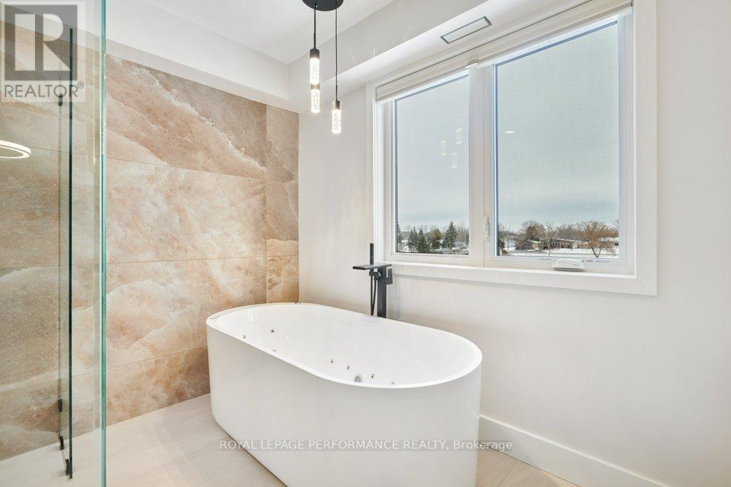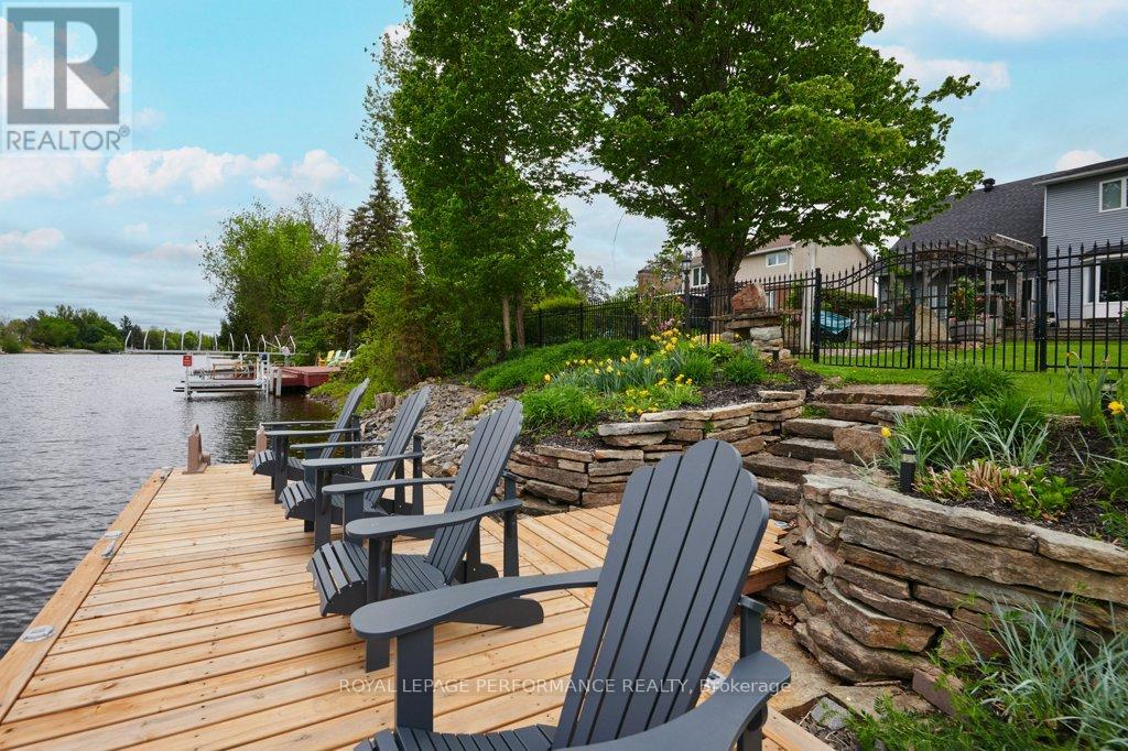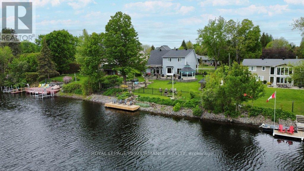 Discover the perfect blend of luxury, comfort, and breathtaking waterfront views in this stunning 5-bedroom, 5-bathroom home, just minutes from Manotick. Nestled on a quiet dead-end street and across from Rideauview Golf Club, this meticulously updated home offers high-end finishes and thoughtful design throughout. Enjoy miles of lock-free boating from your clean shoreline and new dock (Summer 2024). The fully landscaped, fenced backyard is an oasis featuring a gazebo with a hot tub, a deck with a retractable awning, and lush perennial gardens perfect for relaxing or entertaining. Elegant & Spacious Interior with 5 Generous Bedrooms Above Grade (including a main-floor bedroom with a full bath nearby, currently used as an office) 4 Full Spa-Like Bathrooms + 1 Powder Room, Grand Kitchen Spanning half the width of the home, offering stunning water views, Soaring Ceilings & Open Loft Area overlooking the living room, ideal for a study or lounge space. Primary Suite Retreat featuring a luxurious ensuite spa bath and a striking tile focal wall. Prime Location & Exceptional Features Located just minutes from Manoticks charming shops and restaurants, this home is designed for both convenience and tranquility. See attached list of upgrades and inclusions, there is truly nothing left to do but move in and enjoy! INCLUDED: Washer, Dryer, Gas Stove, Wall Oven, Refrigerator, Dishwasher, Microwave, Light Fixtures, Ceiling Fans, Window Coverings, Retractable Awning, Central Vacuum, Irrigation System, On-Demand Hot Water Tank, Generac Generator. Don't miss this rare opportunity. Schedule your private tour today! (id:49063)