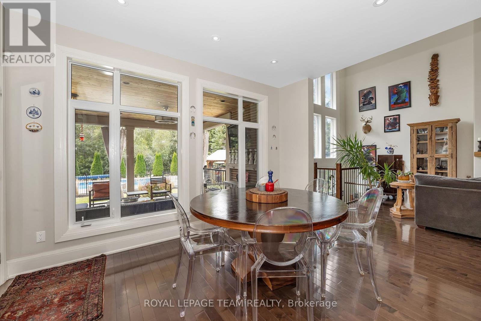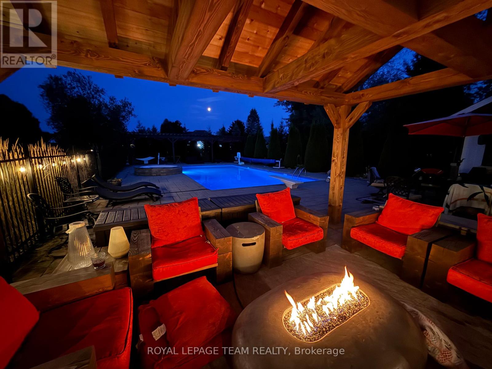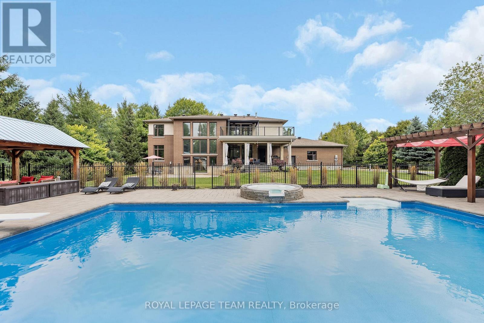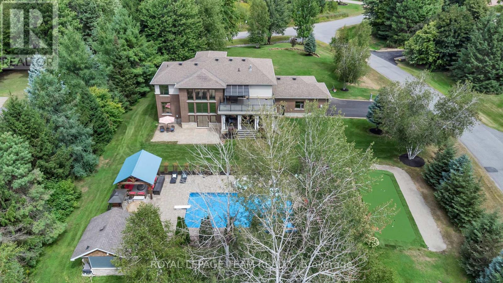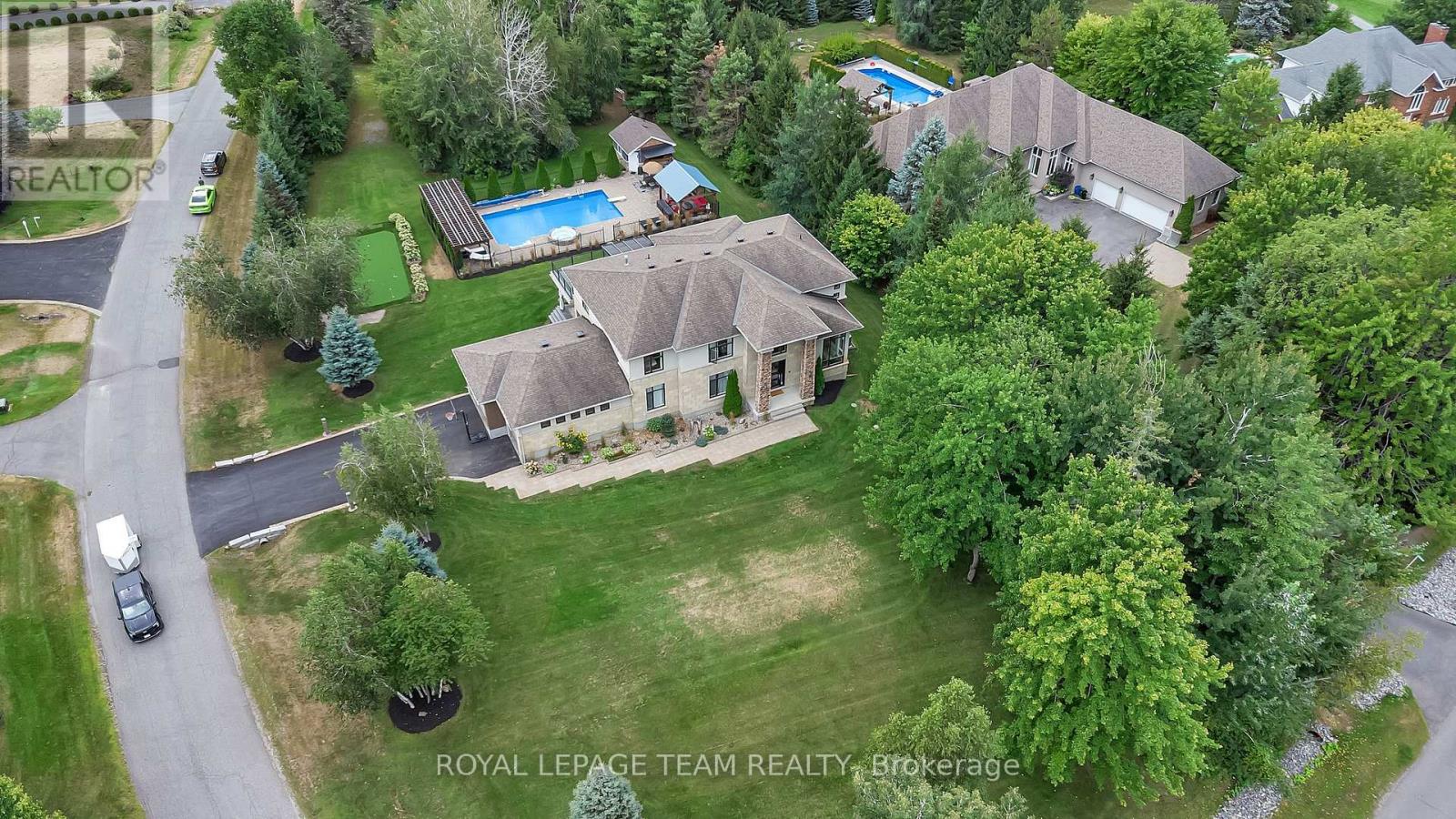 Welcome to Luxury Living in Emerald Links Nestled between the #1 and #2 holes of the West Course, this custom-built executive home sits on one of the largest corner lots in the prestigious Emerald Links Golf Course Community. Built in 2010 and beautifully maintained, this 6,500 sq. ft. residence (~4,800 sq. ft. above grade) offers a perfect blend of elegance, comfort, and state-of-the-art smart home technology. Interior Highlights: Award-winning Design: 2010 Ottawa Winner Kitchen & Ensuite Bathroom of the Year; chef-Inspired kitchen with premium finishes. Bright and spacious lower level featuring additional kitchen facilities and bar, cedar wine cellar, home theatre, vintage pool table, and commercial grade home gym. Thoughtful design continues with an outdoor oasis featuring a 20 x 40 gas-heated ionized pool with spillover hot tub, two poolside gazebos with custom hemlock 8x8-inspired lounge, propane outdoor fireplace, and wood-burning pizza oven. An entertainer's dream, there is also a dedicated pool house with kitchen facilities, an ice machine, a bar & 2 piece bathroom. The list continues with a golf putting green and sand bunker, a second outdoor fire pit, an invisible pet fence around the full property perimeter and a 12-zone automated irrigation system. Additional features include 3 gas fireplaces, two 3-tonne A/C Units, dual furnaces and on-demand hot water, new salt water softener system with UV light (2024), central vacuum system and air exchanger, deep 3-Car insulated garage with 220V universal EV rapid charger with basement access from the garage. Inside, you'll find a fully smart-enabled home, hardwired with CAT5/6 and managed through a centralized tower rack. Using the Control 4 App - control lighting, temperature, security cameras, TVs, audio, garage doors, alarms even the pool all from your smartphone. (id:49063)