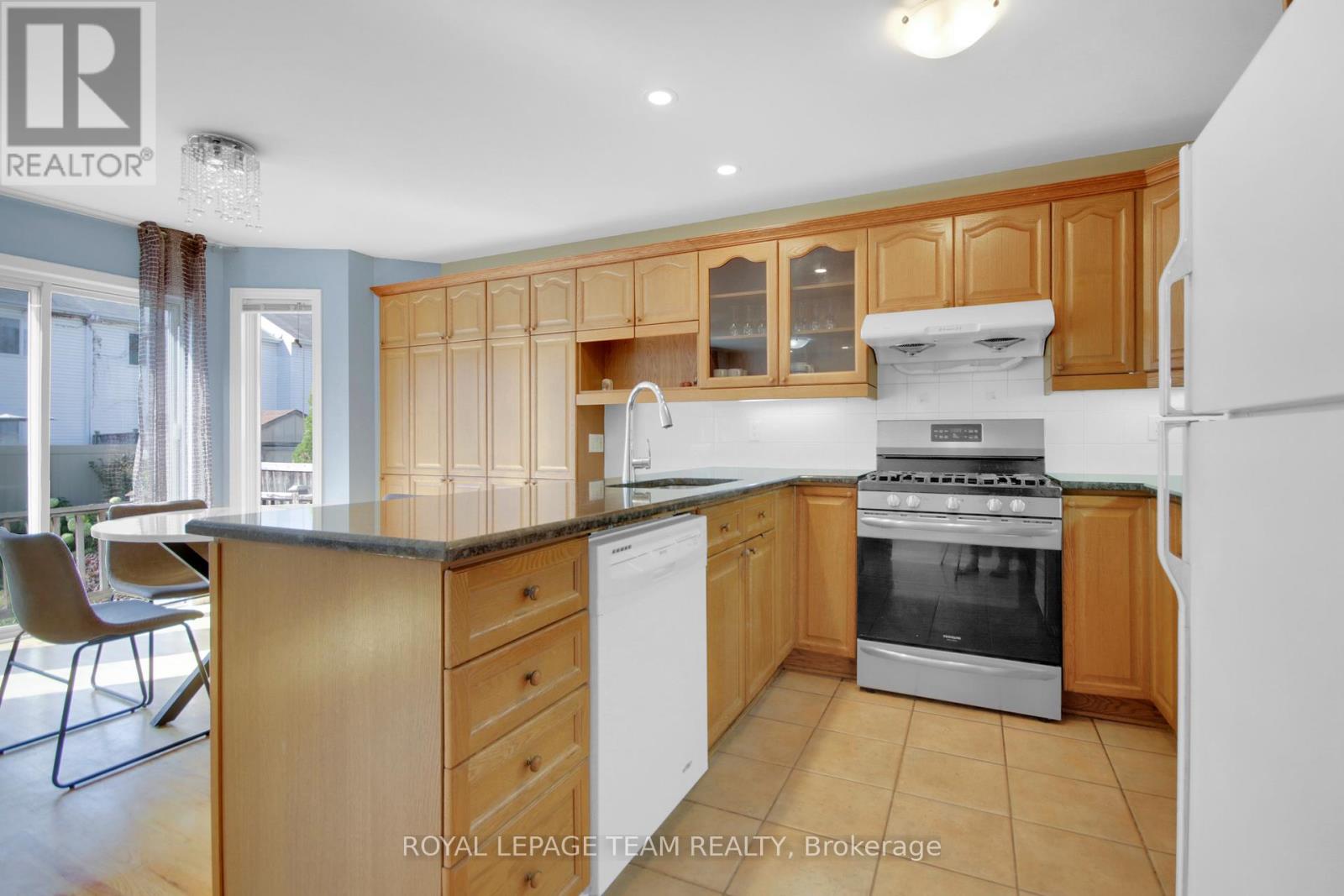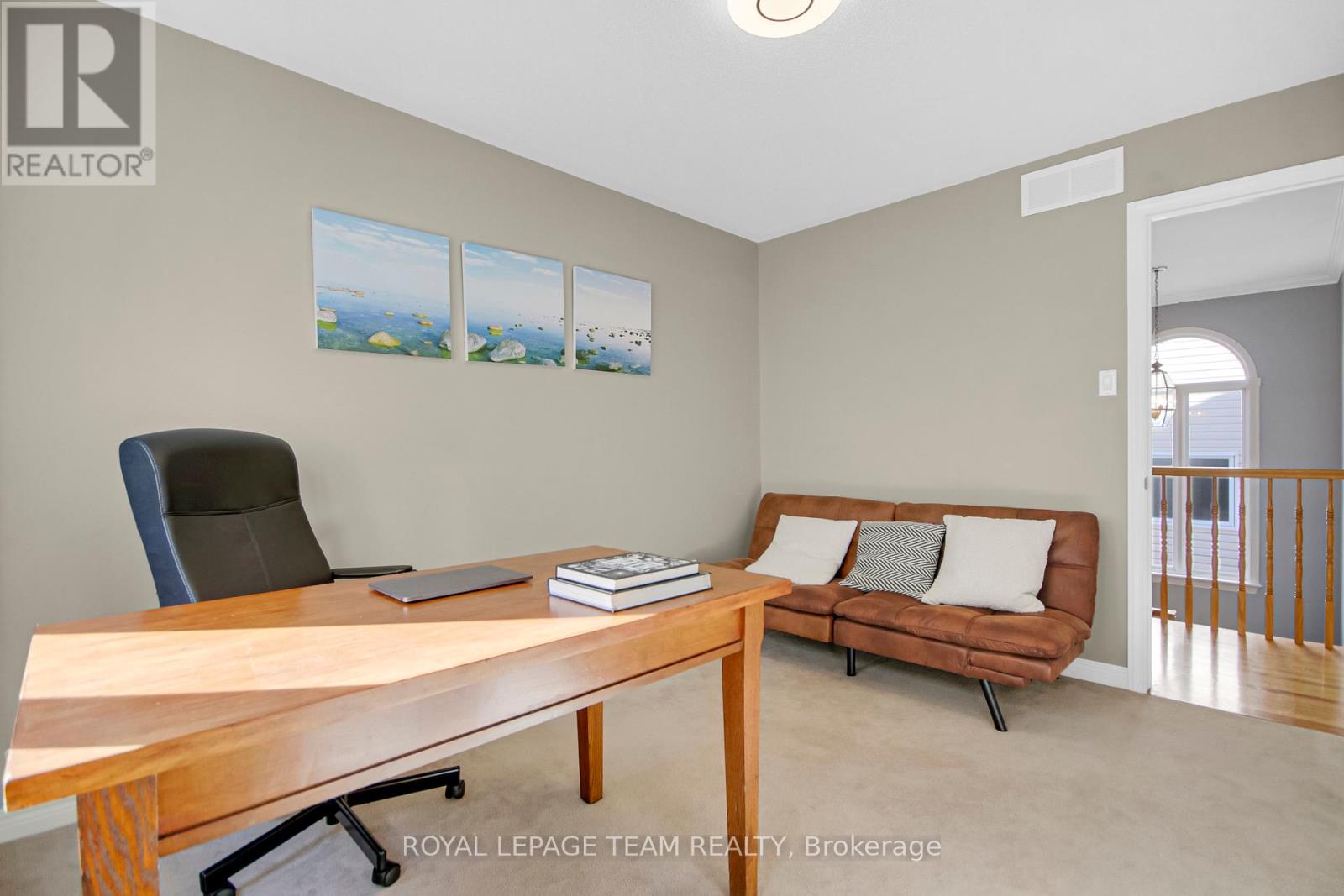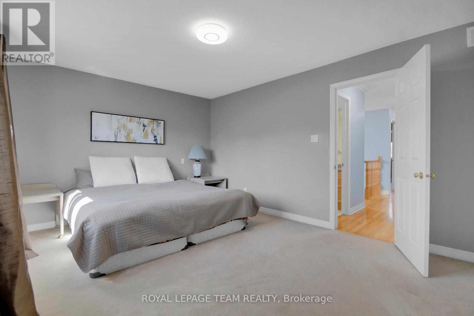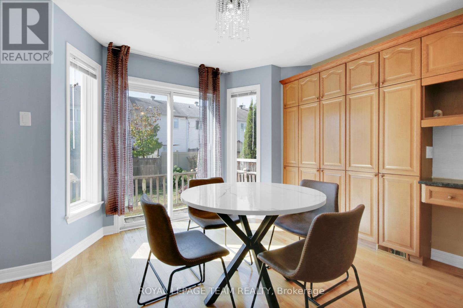 Welcome to this spacious and well-maintained 4 bedroom, 3 bathroom detached home located on a quiet, family-friendly street in one of Barrhaven's most desirable neighbourhoods. Featuring a charming covered front porch, this home combines comfort and style with an abundance of natural light throughout the day. The main level boasts elegant oak hardwood floors and an open-concept living and dining area, ideal for family gatherings or entertaining guests. The bright eat-in kitchen offers a full wall of pantry cabinets, tile flooring, and a large bay window overlooking the backyard, while the adjoining family room with a cozy gas fireplace provides the perfect space to relax and unwind. On the second floor, you will find four spacious bedrooms, including a generous primary suite with a walk-in closet and a luxurious 5-piece ensuite bathroom. The other bedrooms offer ample space and natural light, ideal for large families or home offices. The basement includes a large cold storage area and a workshop or additional storage space. Outside, enjoy a sun-filled southwest facing backyard with a deck, perfect for relaxing or entertaining during the summer months. Ideally situated within walking distance to top-rated schools (St. Andrew, Adrienne Clarkson, and Longfield's Davidson Heights), nearby parks, transit, and restaurants. Just minutes from grocery stores, gyms, and everyday amenities, this home offers exceptional convenience in a quiet and highly sought after community. (id:49063)