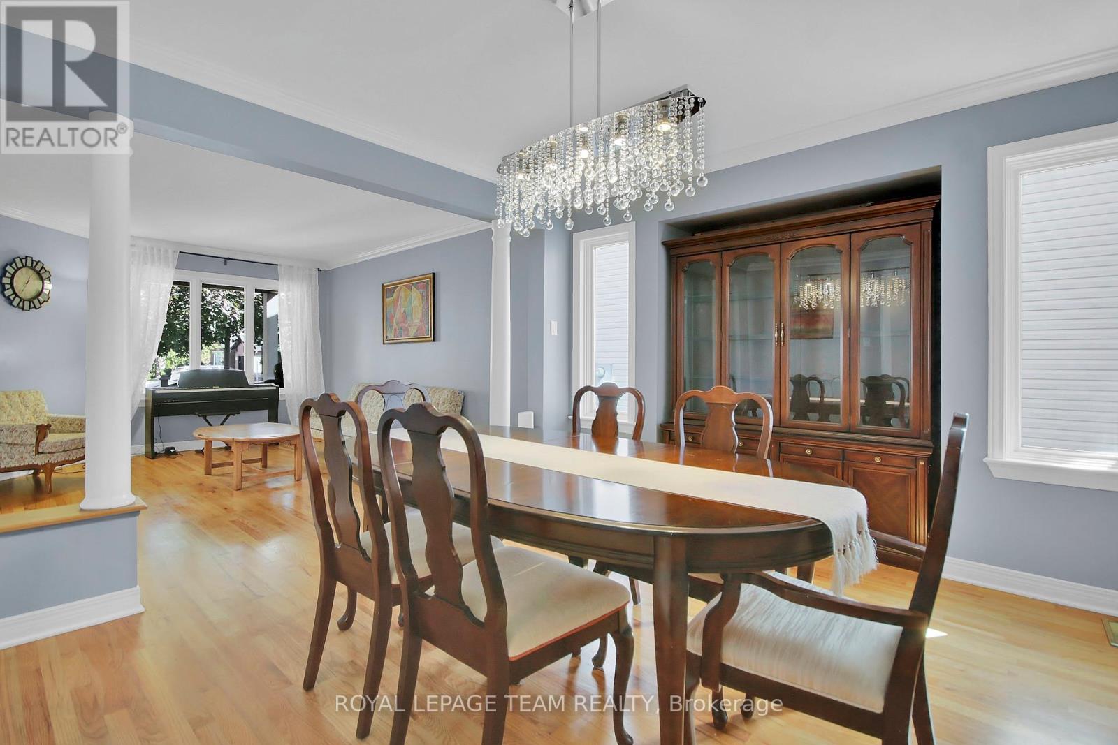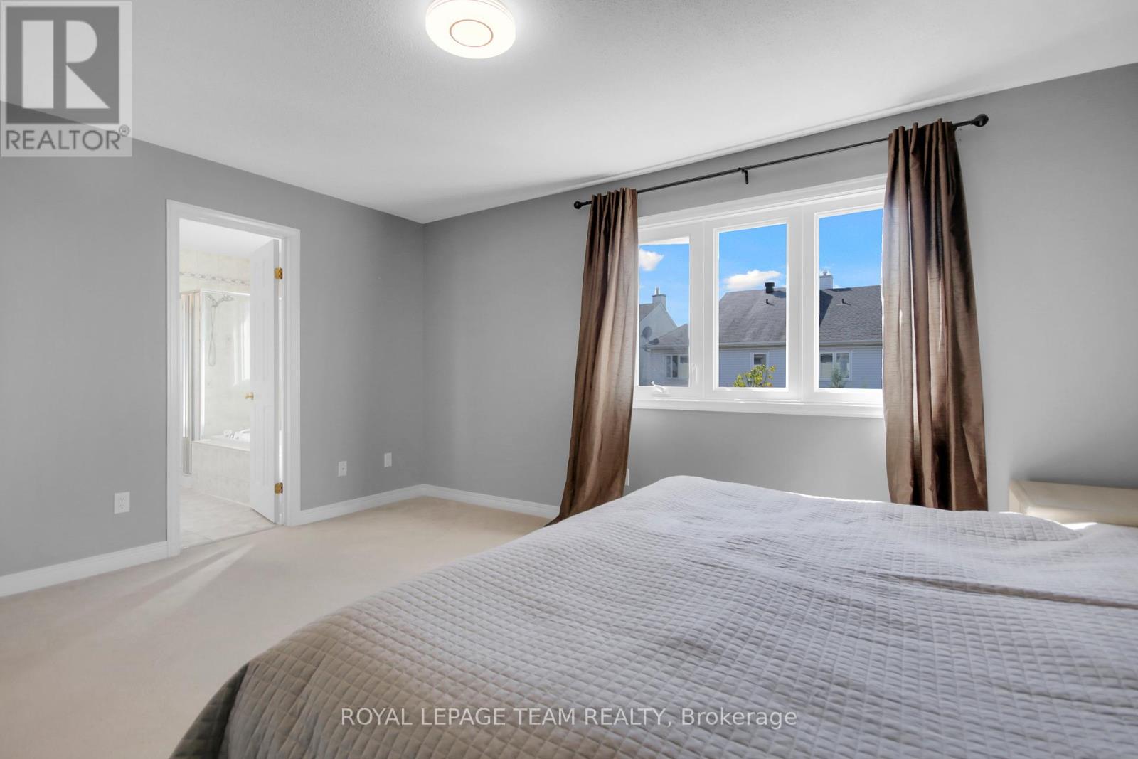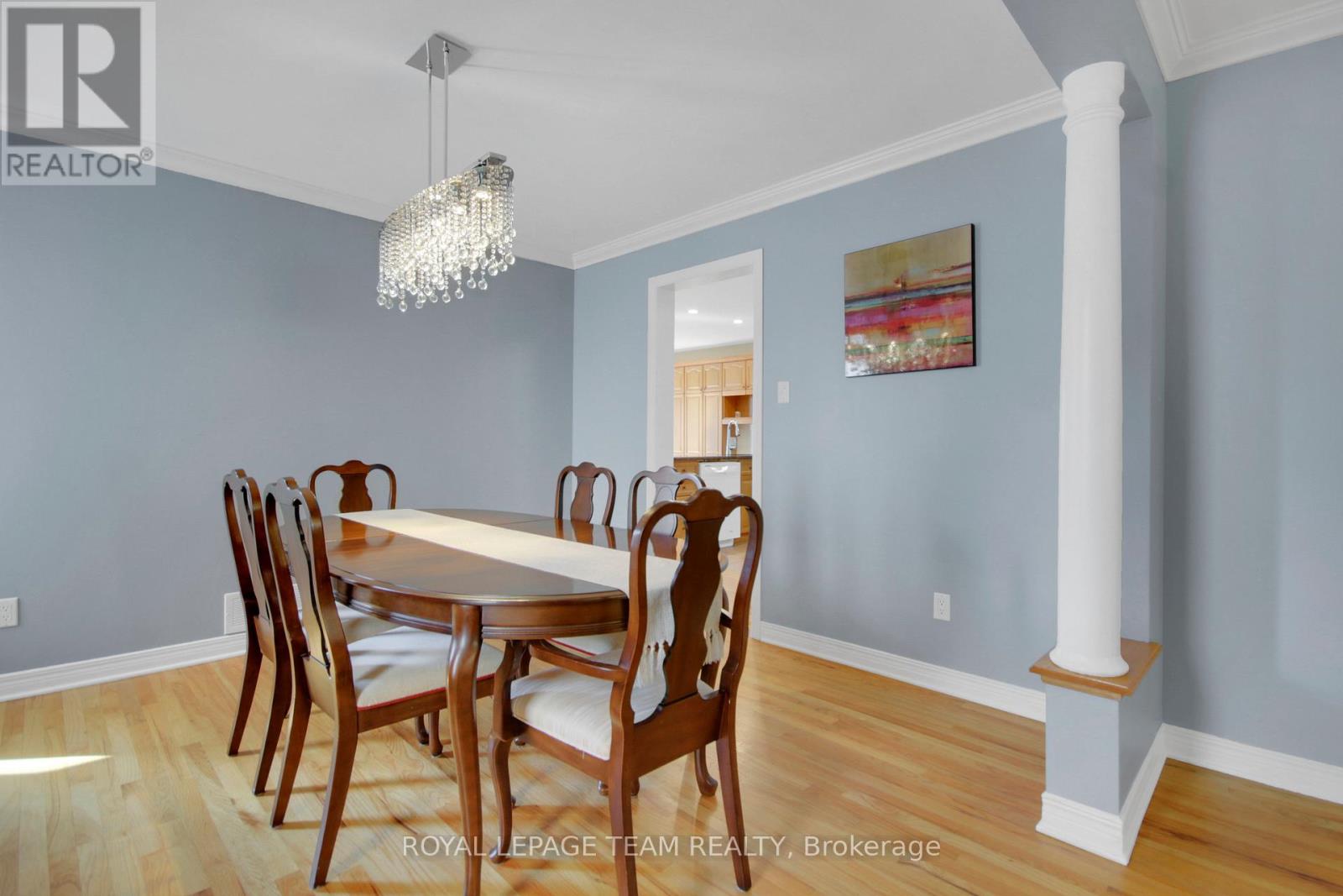 Welcome to this spacious and well-maintained 4 bedroom, 3 bathroom detached home located on a quiet, family-friendly street in one of Barrhaven's most desirable neighbourhoods. Featuring a charming covered front porch, this home combines comfort and style with an abundance of natural light throughout the day. The main level boasts elegant oak hardwood floors and an open-concept living and dining area, ideal for family gatherings or entertaining guests. The bright eat-in kitchen offers a full wall of pantry cabinets, tile flooring, and a large bay window overlooking the backyard, while the adjoining family room with a cozy gas fireplace provides the perfect space to relax and unwind. On the second floor, you will find four spacious bedrooms, including a generous primary suite with a walk-in closet and a luxurious 5-piece ensuite bathroom. The other bedrooms offer ample space and natural light, ideal for large families or home offices. The basement includes a large cold storage area and a workshop or additional storage space. Outside, enjoy a sun-filled southwest facing backyard with a deck, perfect for relaxing or entertaining during the summer months. Ideally situated within walking distance to top-rated schools (St. Andrew, Adrienne Clarkson, and Longfield's Davidson Heights), nearby parks, transit, and restaurants. Just minutes from grocery stores, gyms, and everyday amenities, this home offers exceptional convenience in a quiet and highly sought after community. (id:49063)