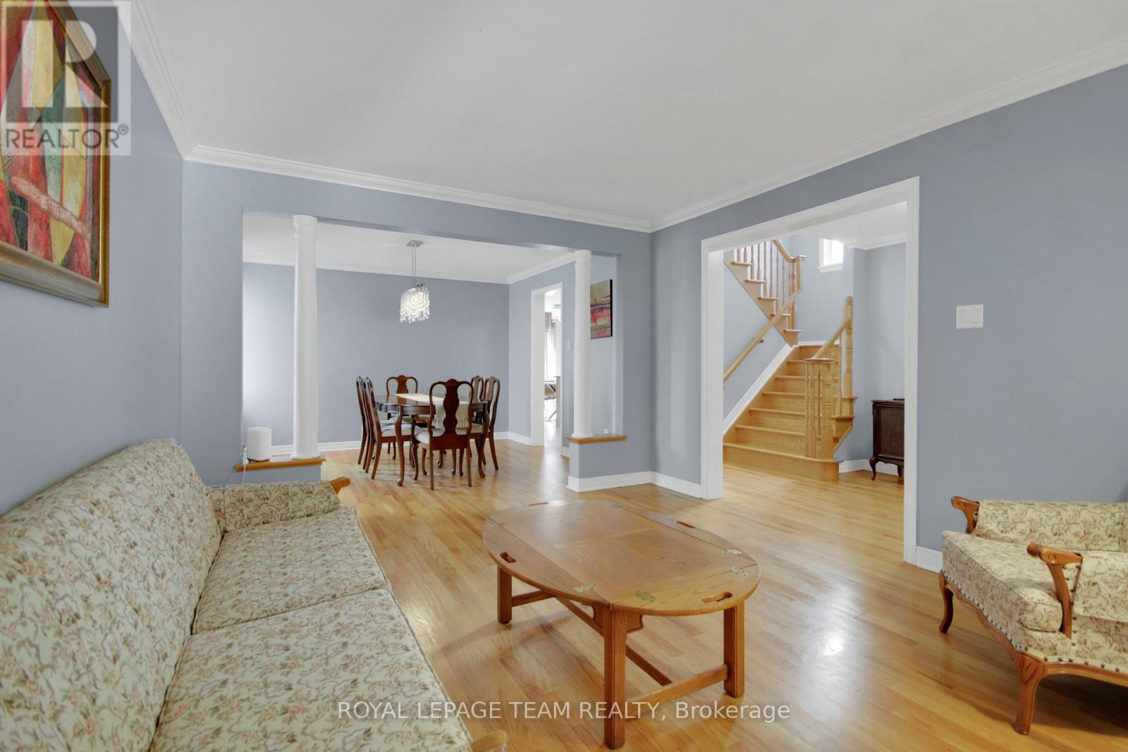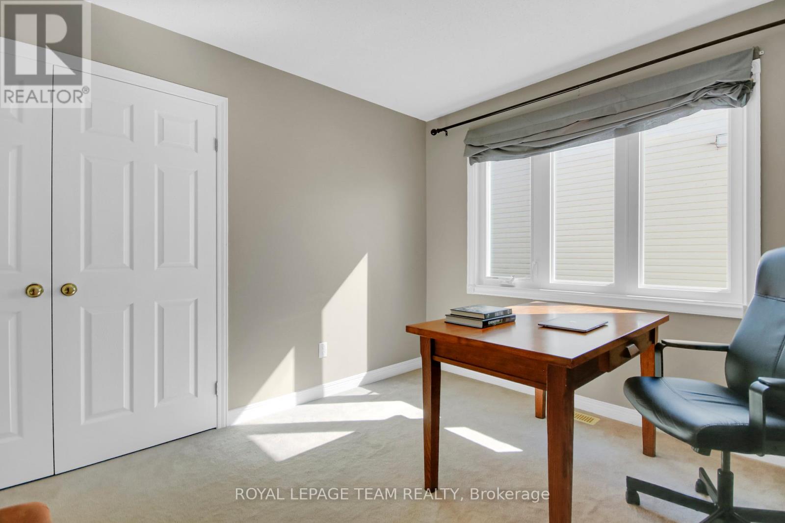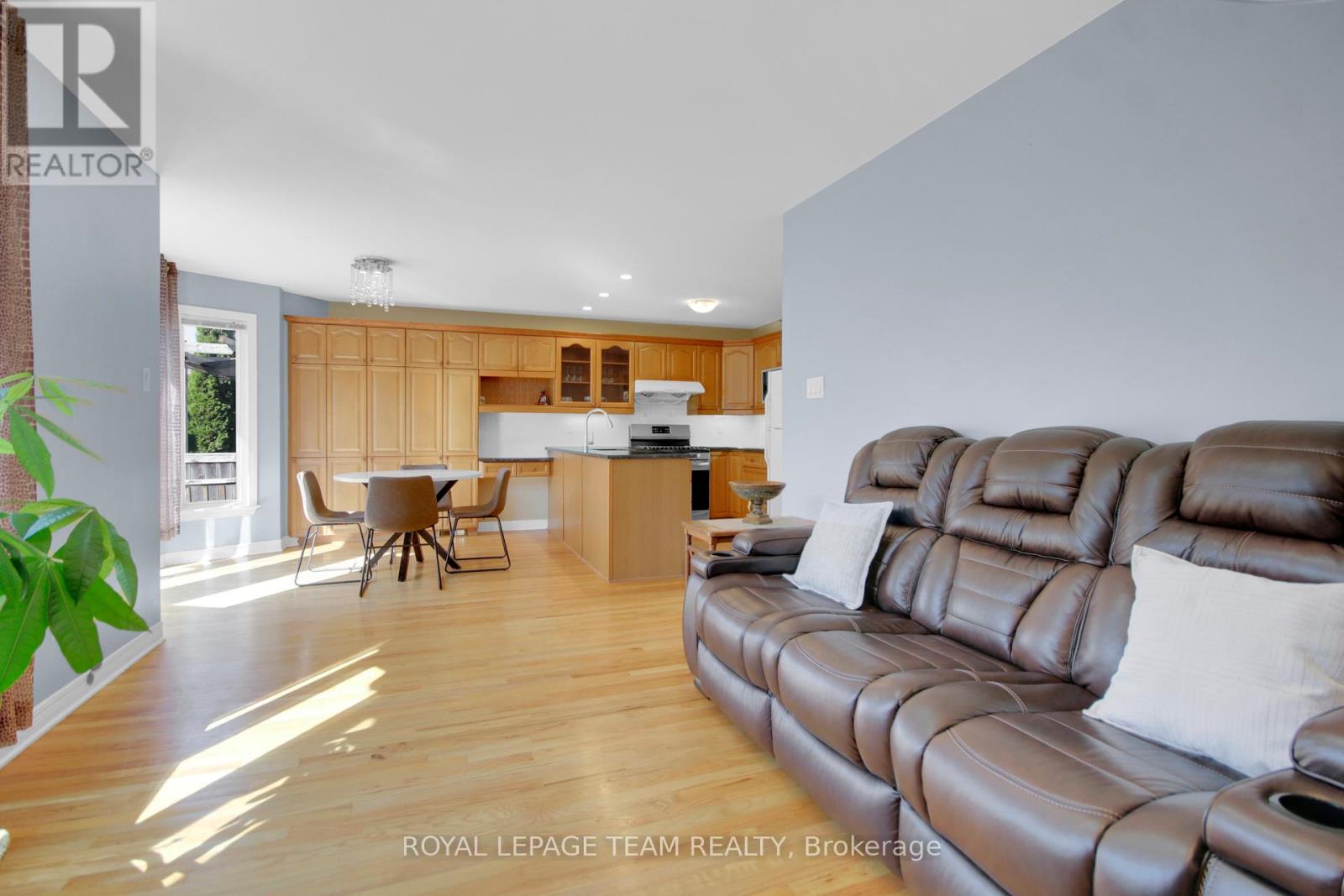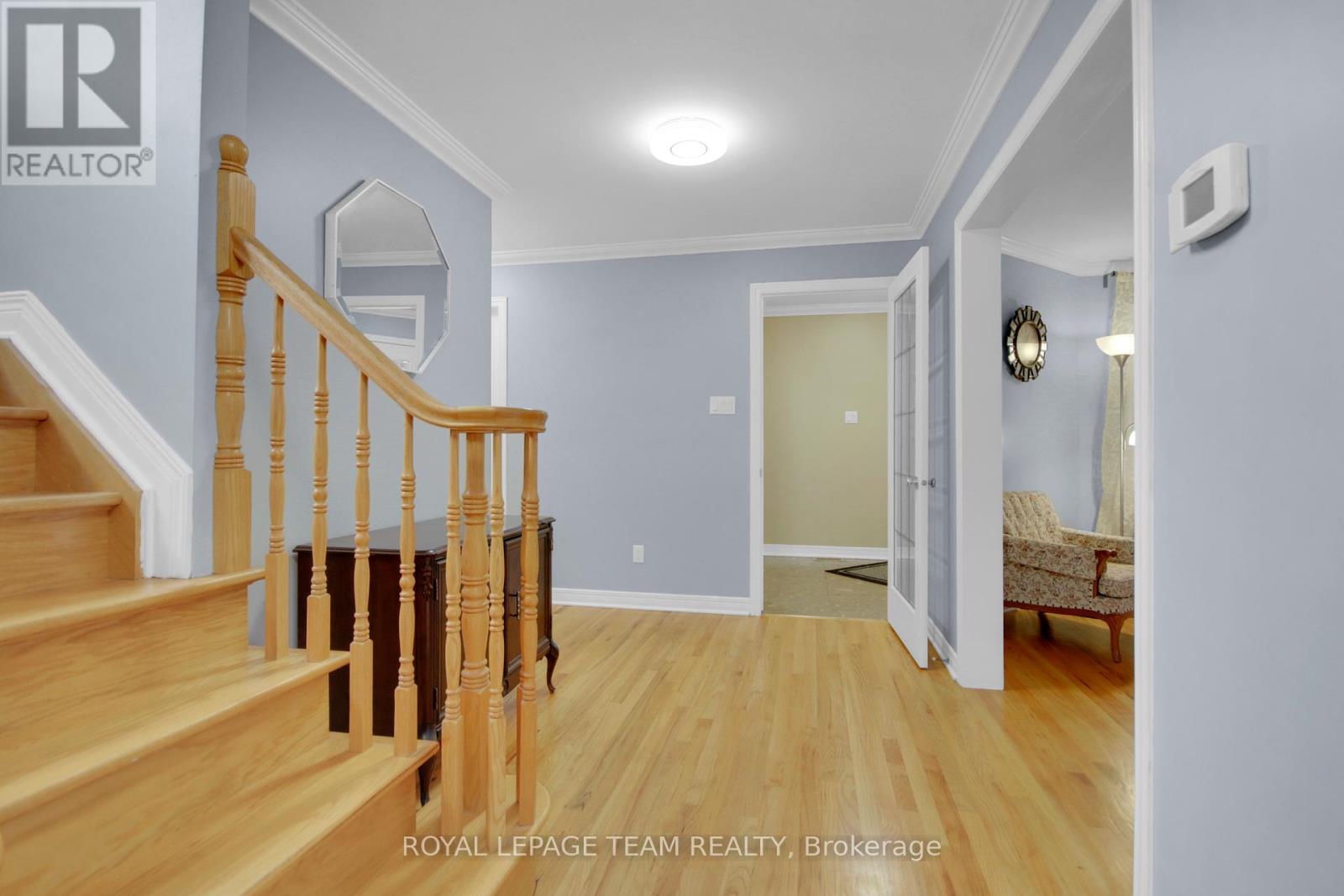 Welcome to this spacious and well-maintained 4 bedroom, 3 bathroom detached home located on a quiet, family-friendly street in one of Barrhaven's most desirable neighbourhoods. Featuring a charming covered front porch, this home combines comfort and style with an abundance of natural light throughout the day. The main level boasts elegant oak hardwood floors and an open-concept living and dining area, ideal for family gatherings or entertaining guests. The bright eat-in kitchen offers a full wall of pantry cabinets, tile flooring, and a large bay window overlooking the backyard, while the adjoining family room with a cozy gas fireplace provides the perfect space to relax and unwind. On the second floor, you will find four spacious bedrooms, including a generous primary suite with a walk-in closet and a luxurious 5-piece ensuite bathroom. The other bedrooms offer ample space and natural light, ideal for large families or home offices. The basement includes a large cold storage area and a workshop or additional storage space. Outside, enjoy a sun-filled southwest facing backyard with a deck, perfect for relaxing or entertaining during the summer months. Ideally situated within walking distance to top-rated schools (St. Andrew, Adrienne Clarkson, and Longfield's Davidson Heights), nearby parks, transit, and restaurants. Just minutes from grocery stores, gyms, and everyday amenities, this home offers exceptional convenience in a quiet and highly sought after community. (id:49063)
