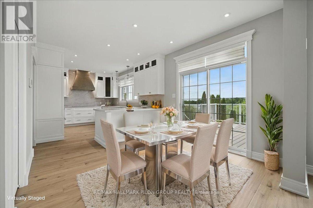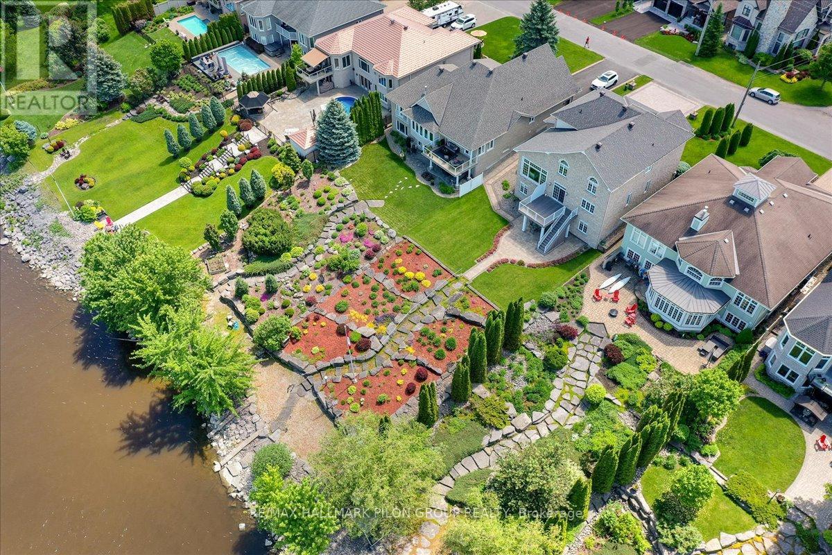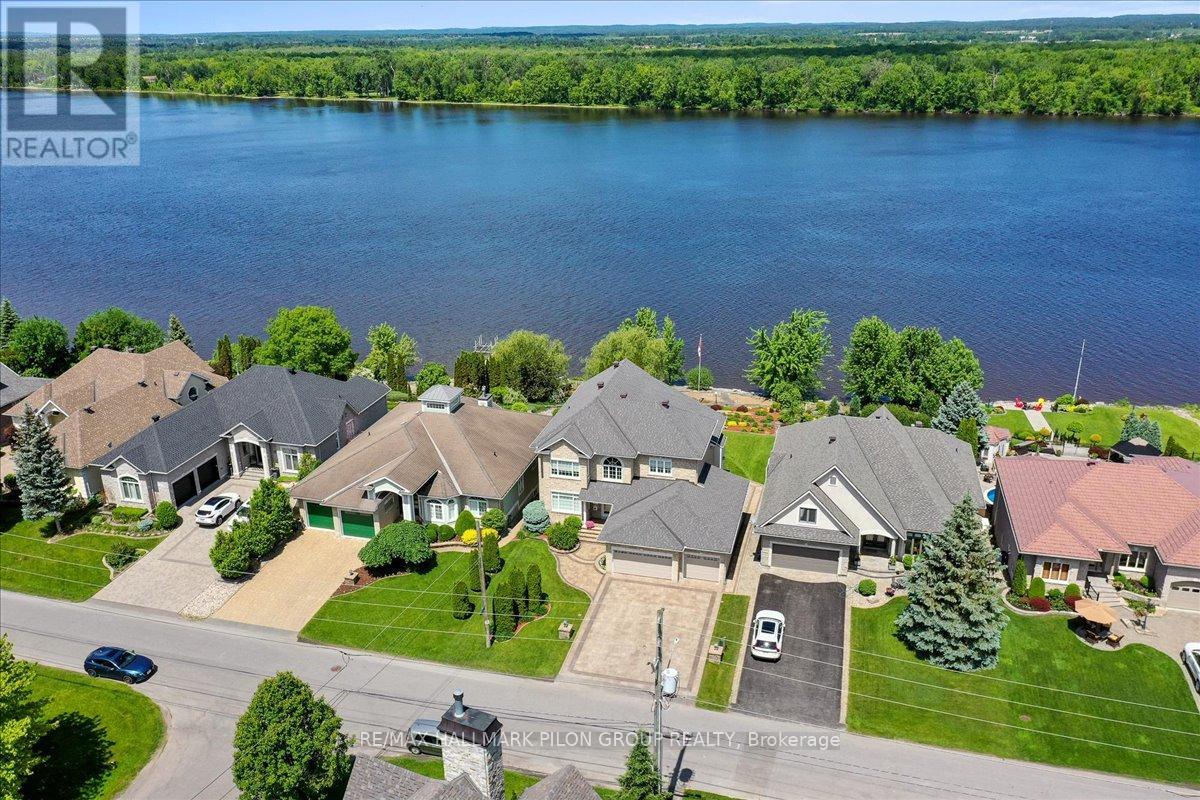 Tucked away on a cul-de-sac & backing directly onto a wide stretch of the Ottawa River, this remarkable residence offers the perfect blend of luxury, convenience & serenity. Professionally landscaped & thoughtfully renovated, the property delivers a true waterfront experience while still offering suburban comfort. Whether you're sipping coffee on the balcony, watching the morning light dance across the water, or gazing at the forested shoreline on the opposite bank, every day here feels like a retreat. All 3 levels feature soaring 9-ft ceilings. From the white oak hardwood floors & marble fireplace to the custom Laurysen kitchen & spa-inspired primary ensuite, every detail has been carefully considered. High-end JennAir & LG appliances, full elevator, electric blinds, whole-home Generac generator & irrigation system drawing from the river add both luxury & function. The main living area is anchored by a striking family room w/wall of windows framing the river. The adjacent chefs kitchen impresses w/sleek cabinetry, walk-in pantry, pendant lighting & premium appliances. The primary suite is a true sanctuary w/vaulted ceiling & sweeping water views. The ensuite rivals any spa, w/walk-in marble shower, soaker tub, double vanities & heated floors. 2 additional bedrooms each include their own ensuites. The walk-out basement is filled w/natural light. Ideal for a grandparent suite, guest retreat, or income potential, this level features a spacious bedroom w/3pc porcelain ensuite, full bar area, & direct outdoor access. The yard is both low maintenance & lush, designed in alignment w/Rideau Conservation Authority guidelines. With 60ft of deeded waterfront + ownership of an additional 100ft extending into the river itself, the lot offers a rare combination of shoreline & submerged property w/lifetime permit in place. This extraordinary property is a rare offering in Ottawa's east end. Detailed list of recent updates available upon request. Some photos virtually staged. (id:49063)