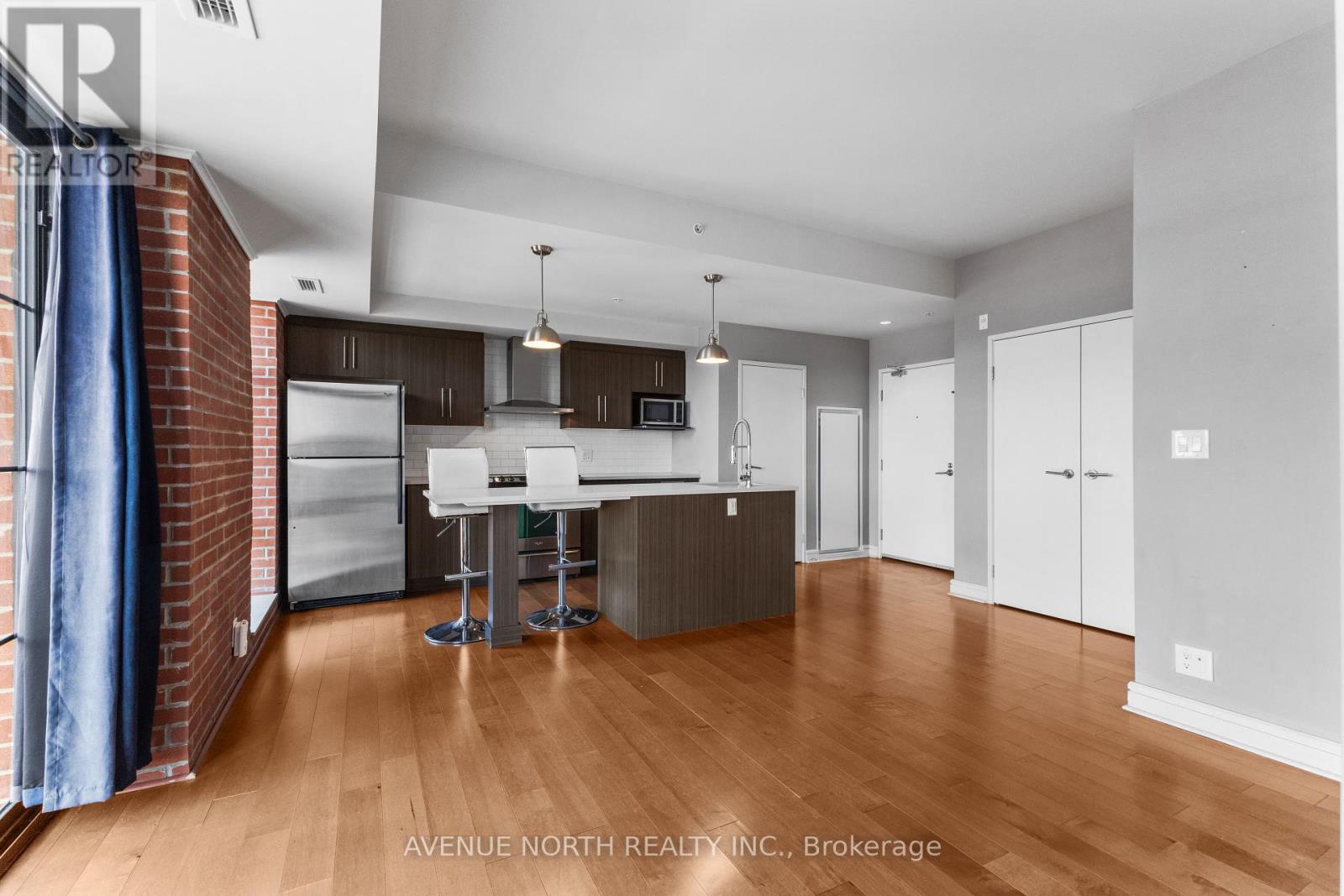 $442.85 MonthlyWelcome to the beautiful and modern 555 Anand Private, Unit 806 a stylish urban retreat in the heart of Ottawa. This bright and thoughtfully designed condo boasts incredible sunset views and unique exposed brick walls that give it a chic, classic loft-style feel. The layout is highly functional with zero wasted space. Enjoy open-concept living with a smartly designed kitchen featuring quartz countertops, ceramic backsplash, and upgraded stainless steel appliances. The large island offers seating for three and doubles as a great workspace or dining area. There's even room for a desk, making it ideal for working from home. The spacious bedroom includes a generous walk-in closet and a convenient cheater ensuite to the bathroom for added privacy and comfort. Step out onto your private balcony complete with a gas line for BBQing perfect for entertaining or relaxing at the end of the day. The location is unbeatable. Just steps from the O-Train, you're directly connected to Carleton University, Little Italy, the new hospital campus, the LRT, and downtown. Situated just off Walkley and moments from Bank Street, you'll have easy access to shopping, restaurants, and the Airport Parkway truly central living in Canadas capital. Affordable, sustainable condo fees, heated underground parking (no more brushing snow off your car!), and a private storage locker complete the package. The building also offers premium amenities including a spacious party room and a state-of-the-art gym with soaring ceilings. This is city living at its best don't miss it! Pets are allowed in this building. (id:49063)