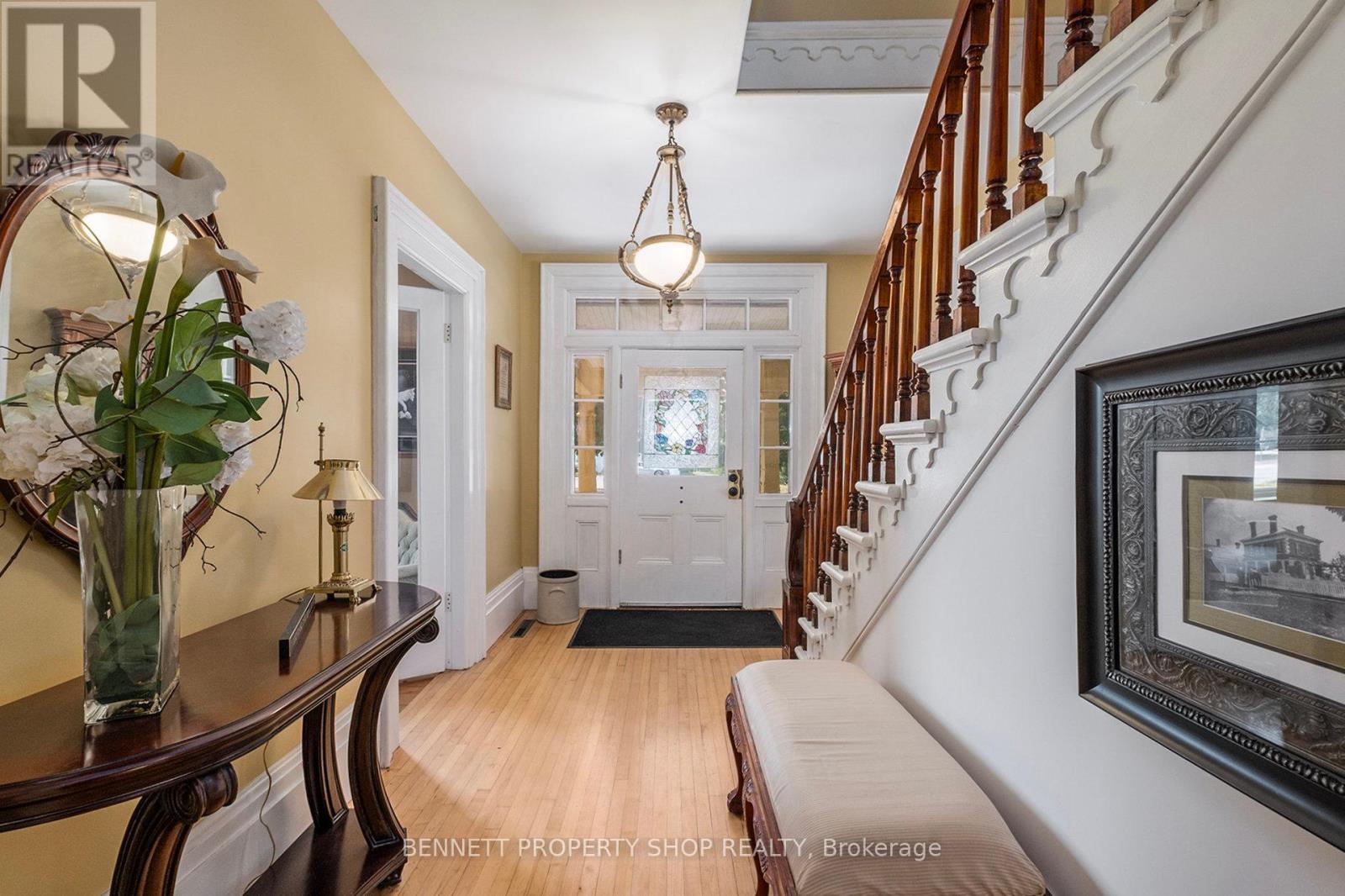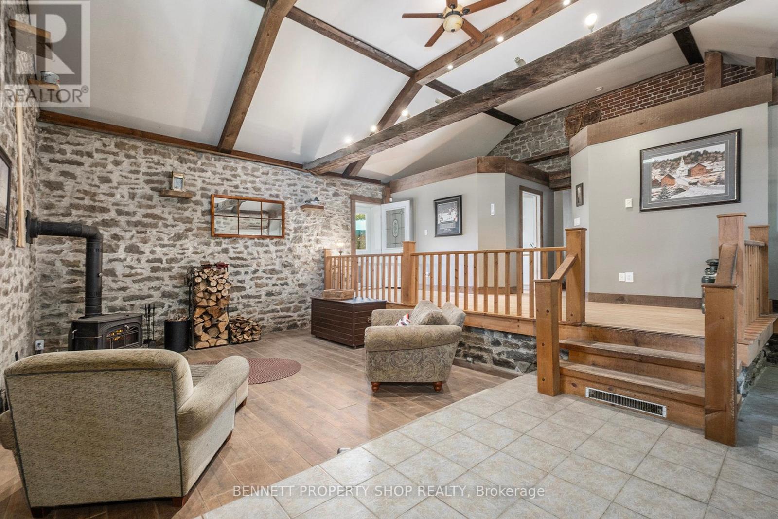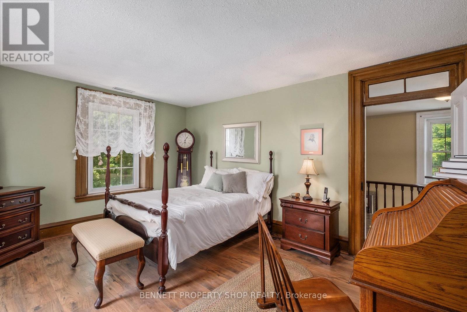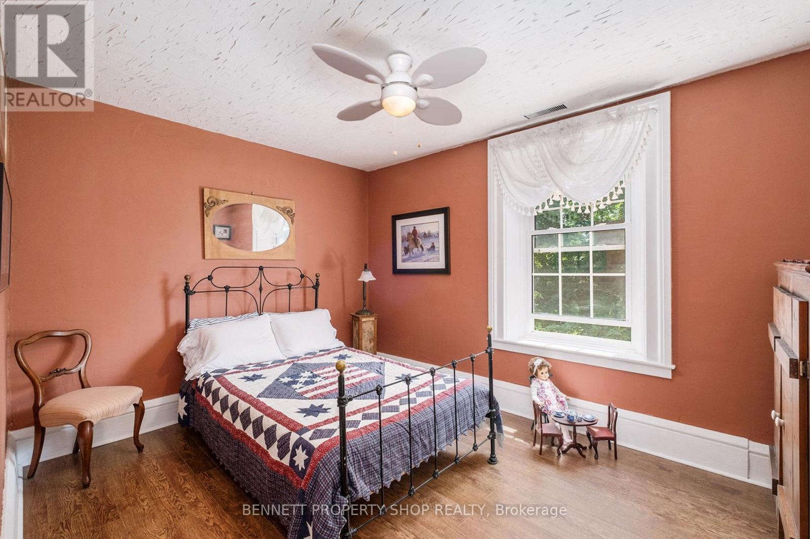 Step Back in Time, Embrace Modern Comfort: Your Historic Estate Awaits! Imagine owning a piece of history - a magnificent 1861 brick and stone residence where timeless elegance meets contemporary living. This legacy property, set on just under 2 acres and well back from the road, offers absolute tranquillity. Be captivated by soaring ceilings in the formal dining room, perfect for memorable gatherings. The formal parlour and front living room/library provide sophisticated spaces for relaxation, while the impressive two-story family room, crafted entirely from stone, offers a rugged yet refined retreat. At its heart, a Vermont Castings wood stove radiates warmth after a day outdoors. The expansive kitchen is a culinary dream, with a massive two-level island for workspace and casual dining, a full pantry, and a built-in desk. Step onto one of two decks to enjoy serene views over your pastoral lawn. Upstairs, four generous bedrooms and a dedicated office offer flexibility for family and work life, served by two full baths. Three distinct staircases hint at the homes rich history and thoughtful design. Outside, a substantial two-storey, three-bay garage offers exceptional storage for kayaks, bikes, tools, or a workshop, while an additional single-car garage adds convenience. This exceptional property is a rare opportunity to own a significant piece of history without sacrificing modern amenities or space. Embrace a lifestyle where the tranquillity of nature meets the sophistication of a meticulously maintained historic home. Book your private viewing today and envision your next chapter here. (id:49063)