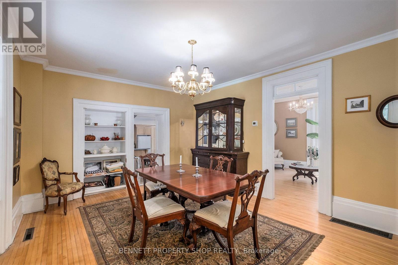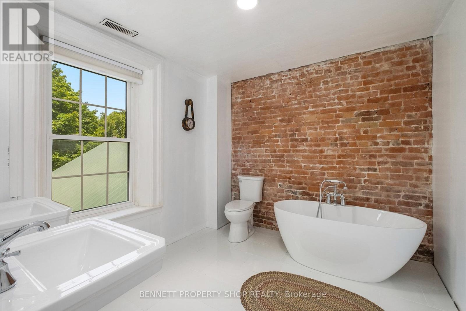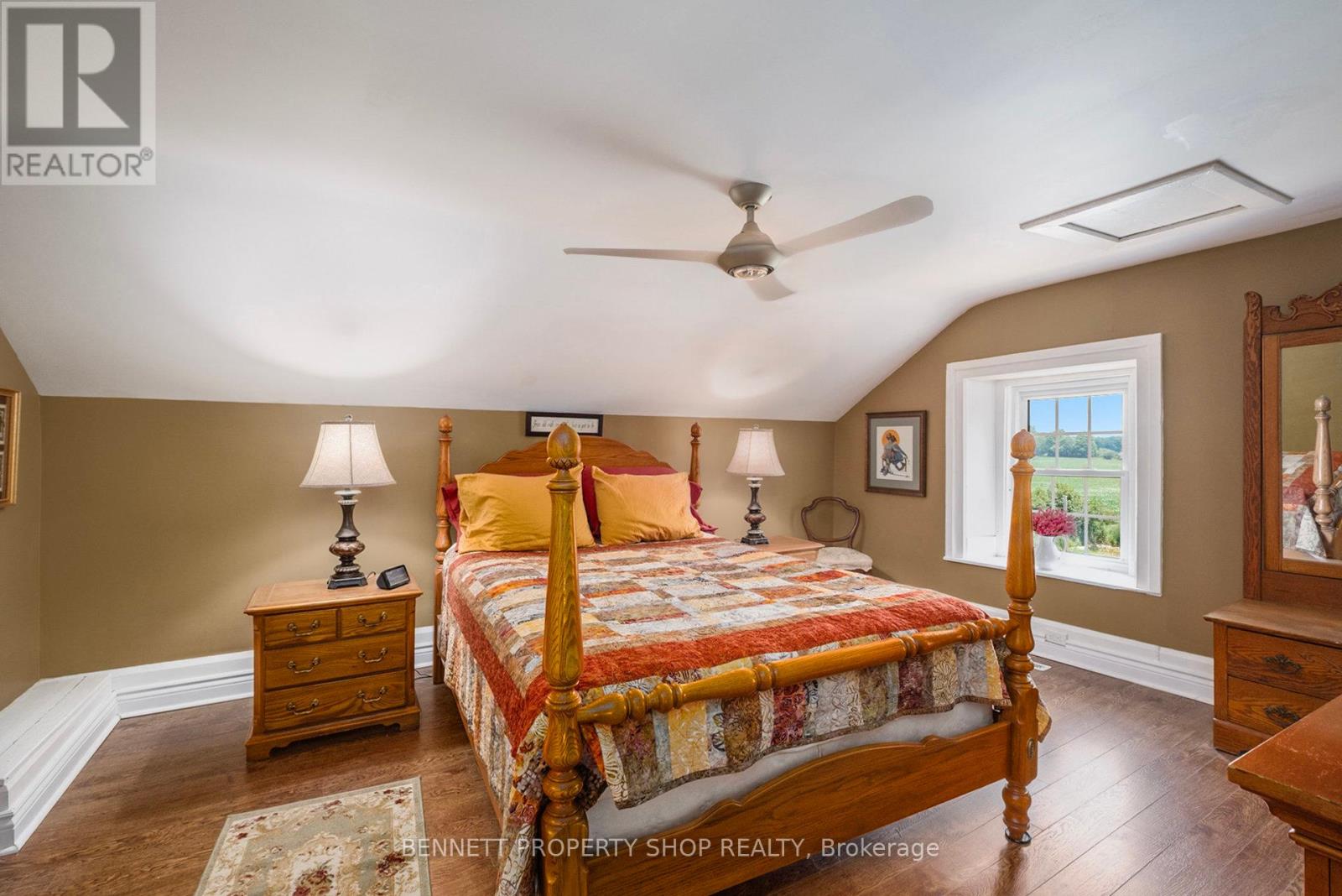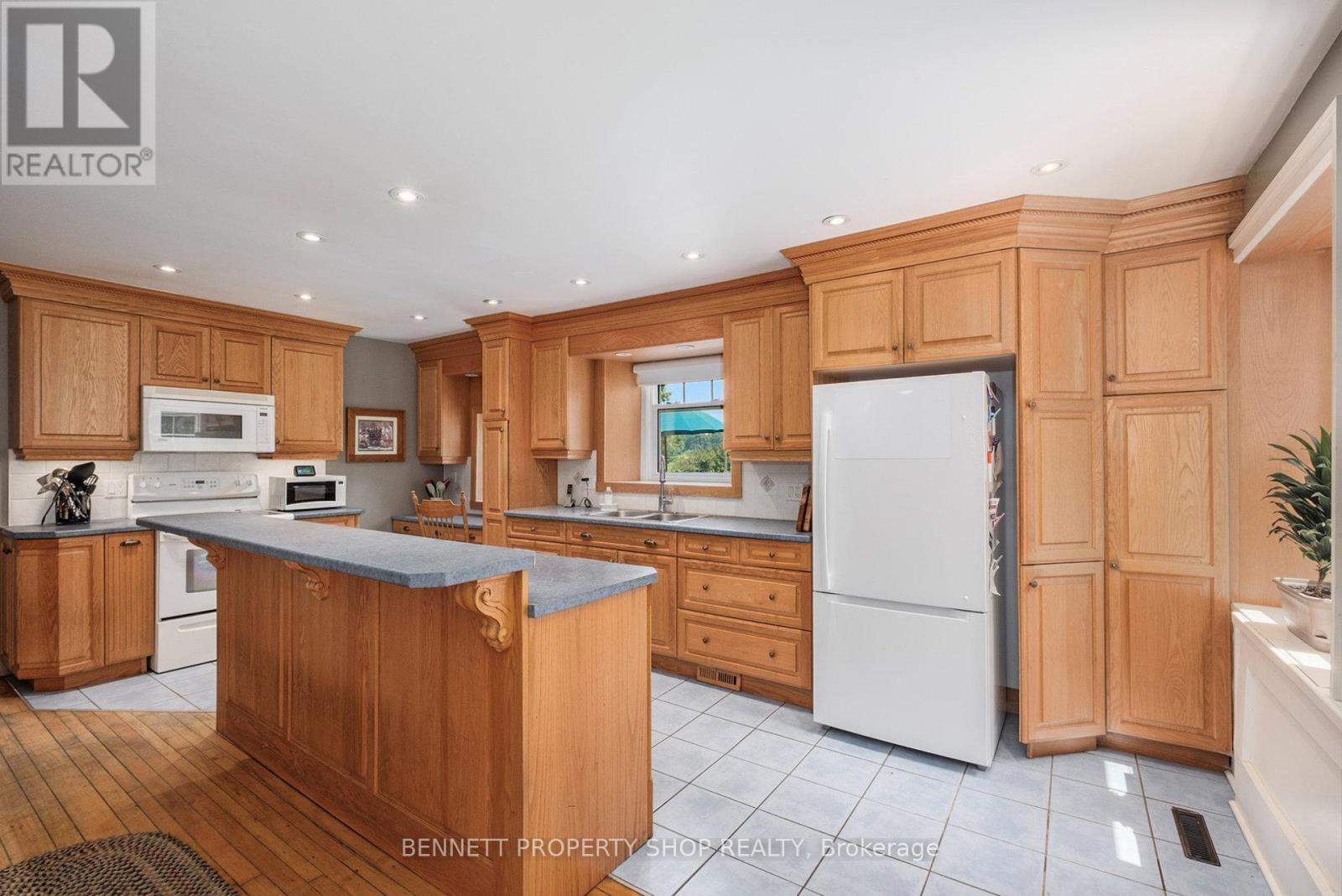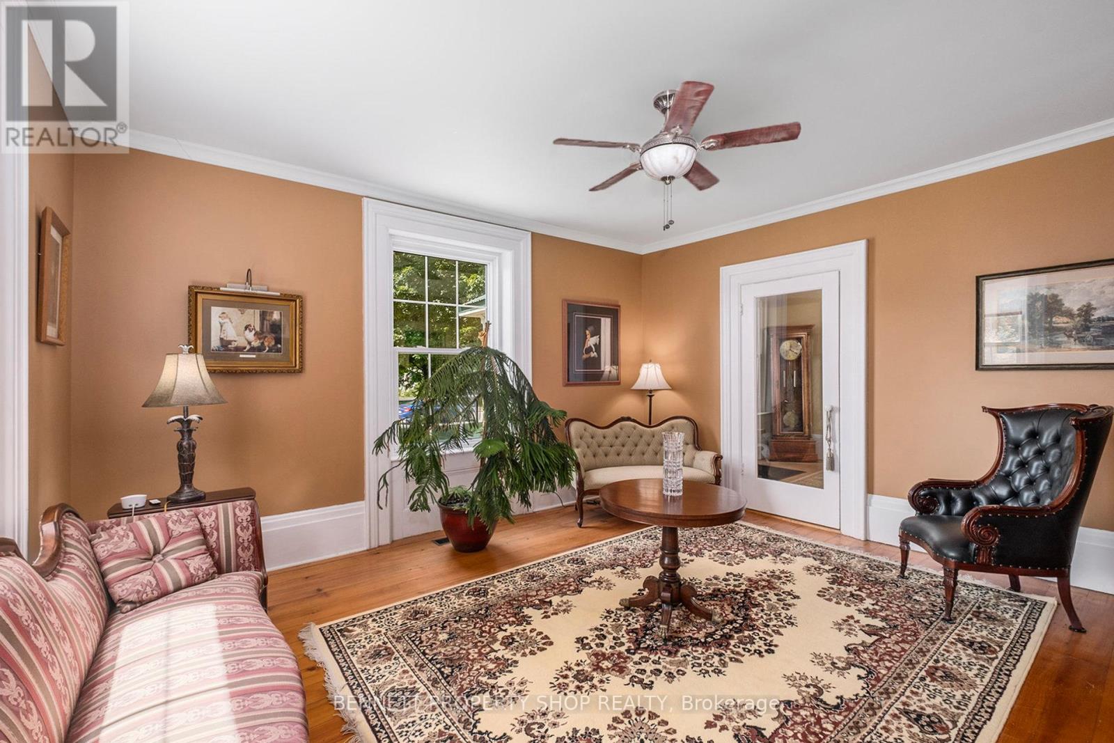 Step Back in Time, Embrace Modern Comfort: Your Historic Estate Awaits! Imagine owning a piece of history - a magnificent 1861 brick and stone residence where timeless elegance meets contemporary living. This legacy property, set on just under 2 acres and well back from the road, offers absolute tranquillity. Be captivated by soaring ceilings in the formal dining room, perfect for memorable gatherings. The formal parlour and front living room/library provide sophisticated spaces for relaxation, while the impressive two-story family room, crafted entirely from stone, offers a rugged yet refined retreat. At its heart, a Vermont Castings wood stove radiates warmth after a day outdoors. The expansive kitchen is a culinary dream, with a massive two-level island for workspace and casual dining, a full pantry, and a built-in desk. Step onto one of two decks to enjoy serene views over your pastoral lawn. Upstairs, four generous bedrooms and a dedicated office offer flexibility for family and work life, served by two full baths. Three distinct staircases hint at the homes rich history and thoughtful design. Outside, a substantial two-storey, three-bay garage offers exceptional storage for kayaks, bikes, tools, or a workshop, while an additional single-car garage adds convenience. This exceptional property is a rare opportunity to own a significant piece of history without sacrificing modern amenities or space. Embrace a lifestyle where the tranquillity of nature meets the sophistication of a meticulously maintained historic home. Book your private viewing today and envision your next chapter here. (id:49063)