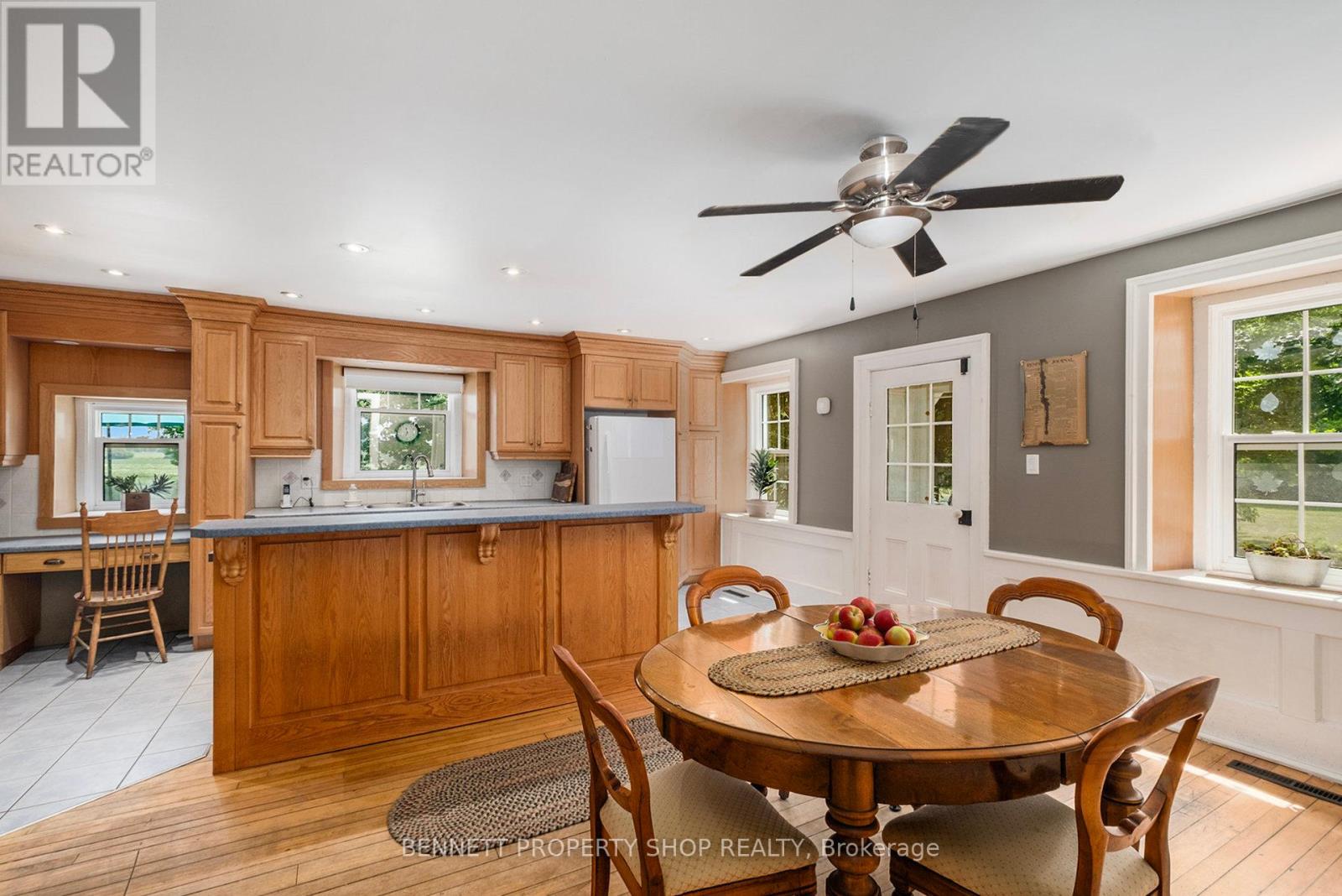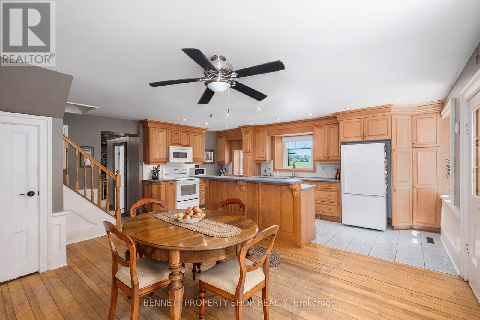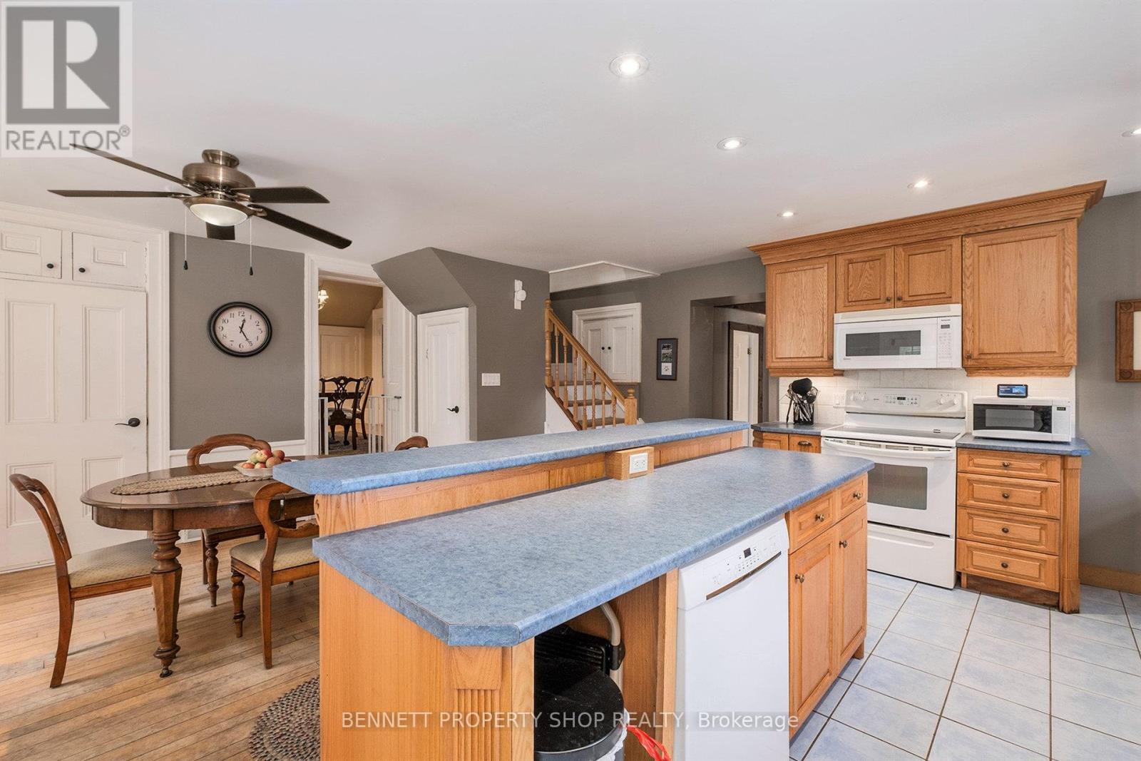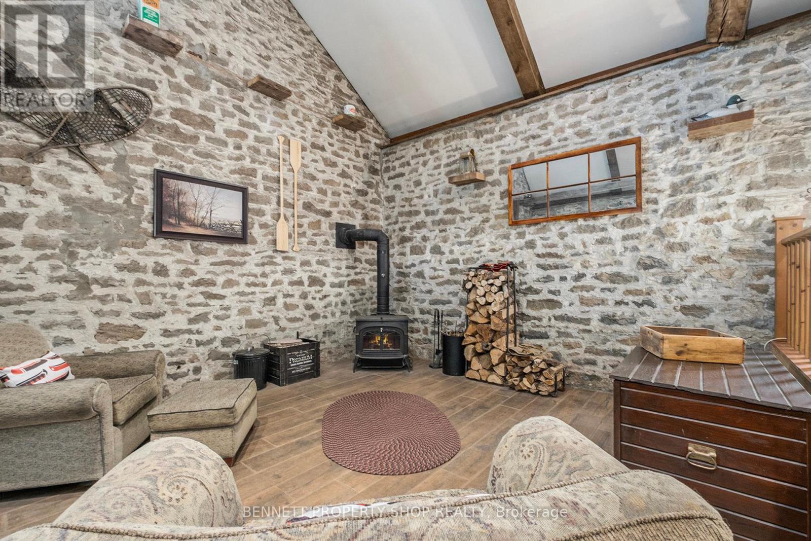 Step Back in Time, Embrace Modern Comfort: Your Historic Estate Awaits! Imagine owning a piece of history - a magnificent 1861 brick and stone residence where timeless elegance meets contemporary living. This legacy property, set on just under 2 acres and well back from the road, offers absolute tranquillity. Be captivated by soaring ceilings in the formal dining room, perfect for memorable gatherings. The formal parlour and front living room/library provide sophisticated spaces for relaxation, while the impressive two-story family room, crafted entirely from stone, offers a rugged yet refined retreat. At its heart, a Vermont Castings wood stove radiates warmth after a day outdoors. The expansive kitchen is a culinary dream, with a massive two-level island for workspace and casual dining, a full pantry, and a built-in desk. Step onto one of two decks to enjoy serene views over your pastoral lawn. Upstairs, four generous bedrooms and a dedicated office offer flexibility for family and work life, served by two full baths. Three distinct staircases hint at the homes rich history and thoughtful design. Outside, a substantial two-storey, three-bay garage offers exceptional storage for kayaks, bikes, tools, or a workshop, while an additional single-car garage adds convenience. This exceptional property is a rare opportunity to own a significant piece of history without sacrificing modern amenities or space. Embrace a lifestyle where the tranquillity of nature meets the sophistication of a meticulously maintained historic home. Book your private viewing today and envision your next chapter here. (id:49063)