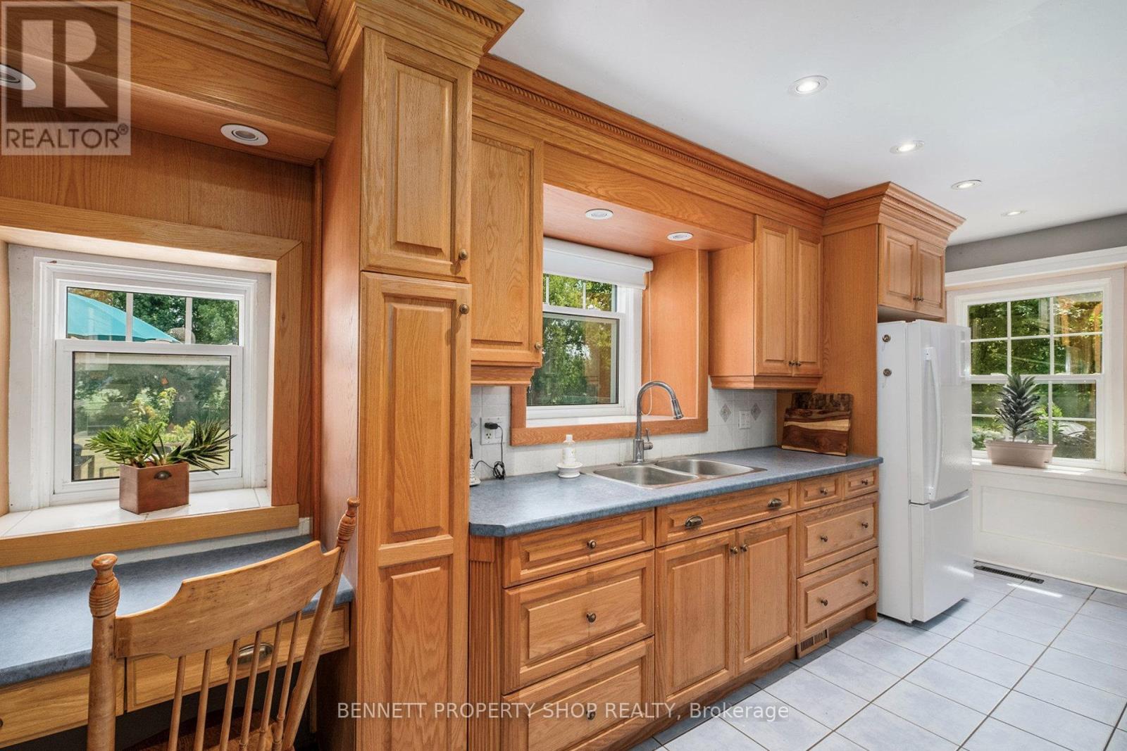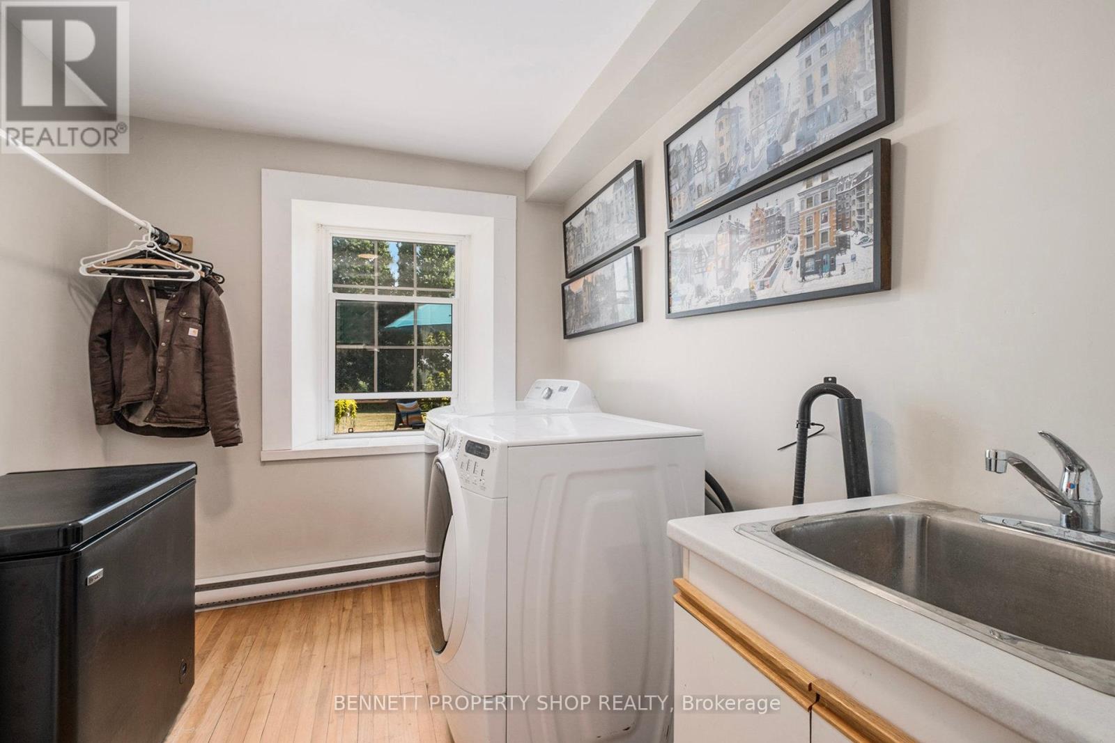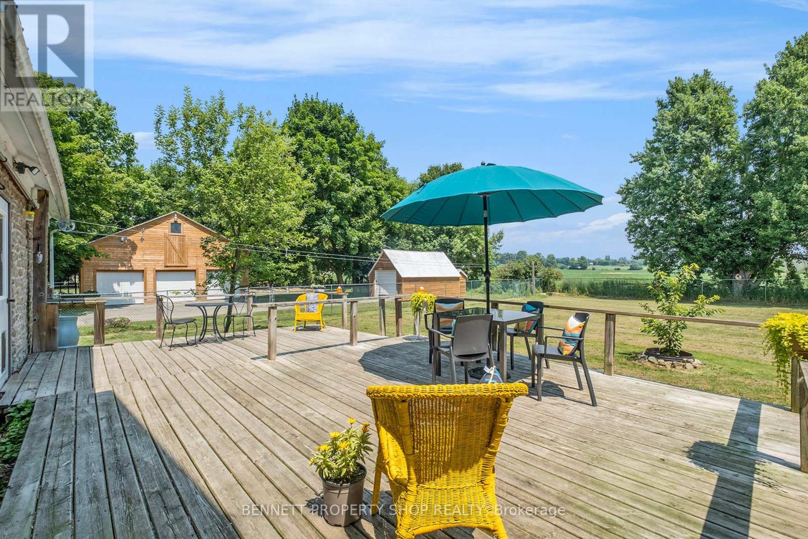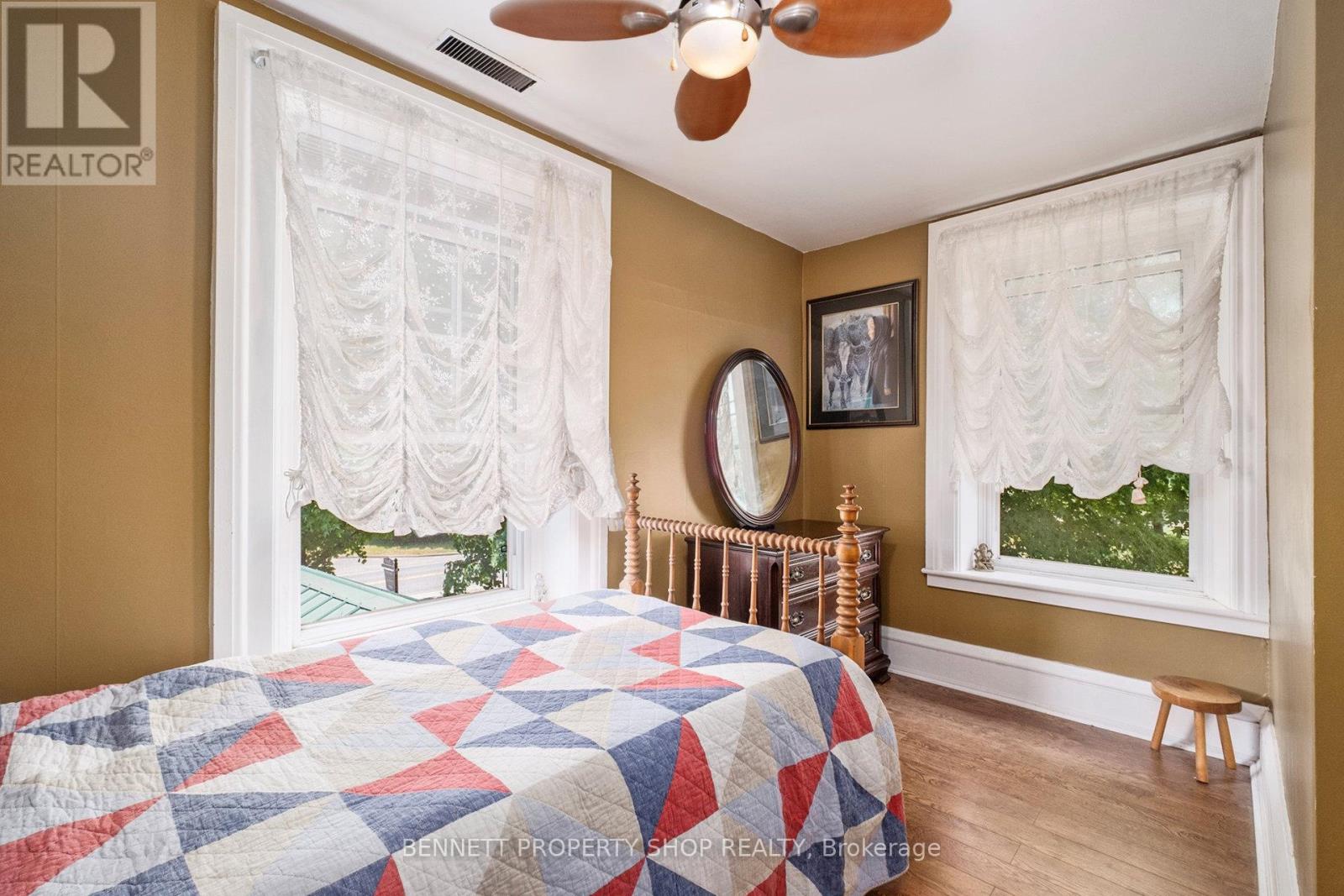 Step Back in Time, Embrace Modern Comfort: Your Historic Estate Awaits! Imagine owning a piece of history - a magnificent 1861 brick and stone residence where timeless elegance meets contemporary living. This legacy property, set on just under 2 acres and well back from the road, offers absolute tranquillity. Be captivated by soaring ceilings in the formal dining room, perfect for memorable gatherings. The formal parlour and front living room/library provide sophisticated spaces for relaxation, while the impressive two-story family room, crafted entirely from stone, offers a rugged yet refined retreat. At its heart, a Vermont Castings wood stove radiates warmth after a day outdoors. The expansive kitchen is a culinary dream, with a massive two-level island for workspace and casual dining, a full pantry, and a built-in desk. Step onto one of two decks to enjoy serene views over your pastoral lawn. Upstairs, four generous bedrooms and a dedicated office offer flexibility for family and work life, served by two full baths. Three distinct staircases hint at the homes rich history and thoughtful design. Outside, a substantial two-storey, three-bay garage offers exceptional storage for kayaks, bikes, tools, or a workshop, while an additional single-car garage adds convenience. This exceptional property is a rare opportunity to own a significant piece of history without sacrificing modern amenities or space. Embrace a lifestyle where the tranquillity of nature meets the sophistication of a meticulously maintained historic home. Book your private viewing today and envision your next chapter here. (id:49063)