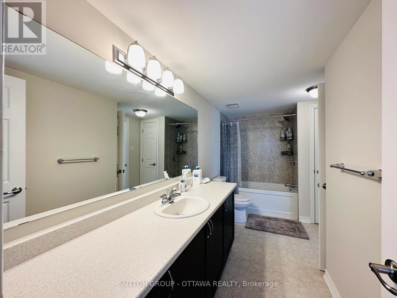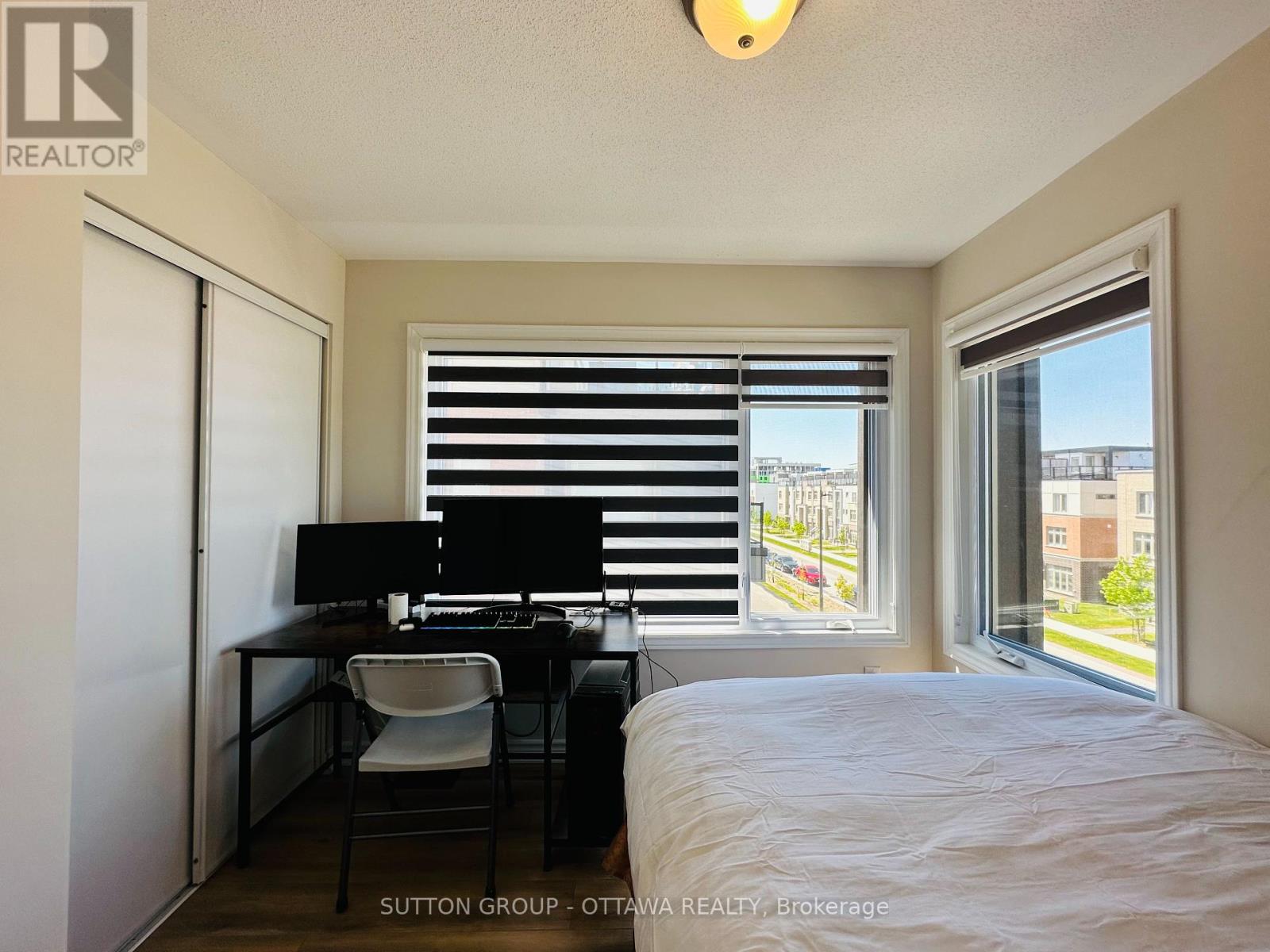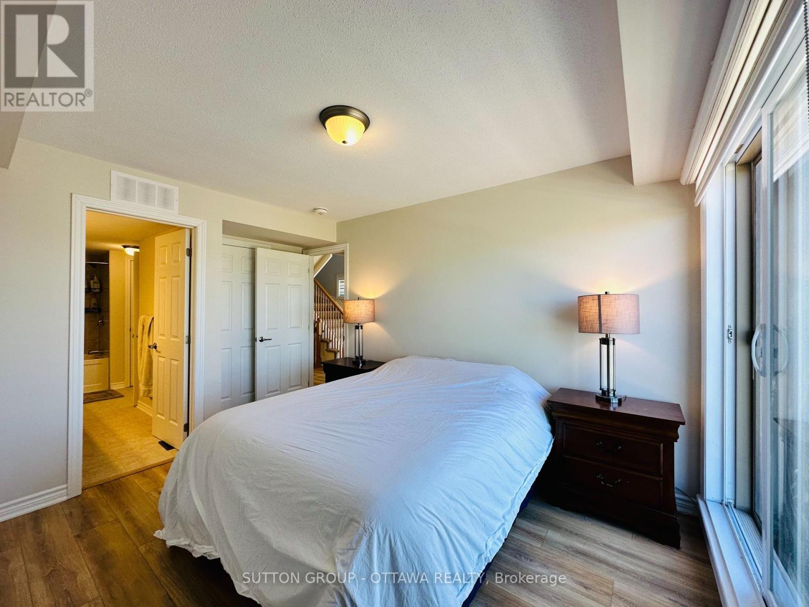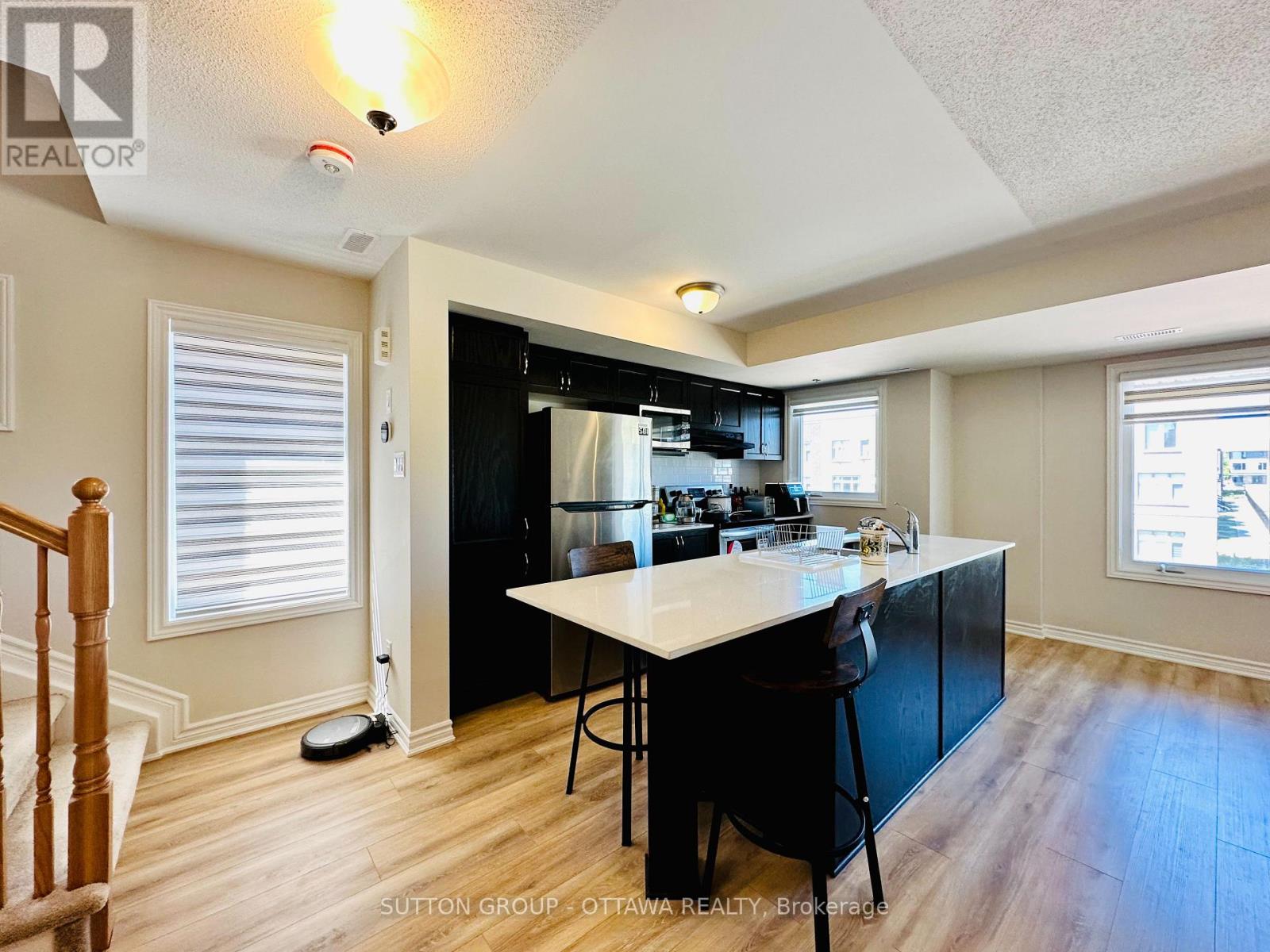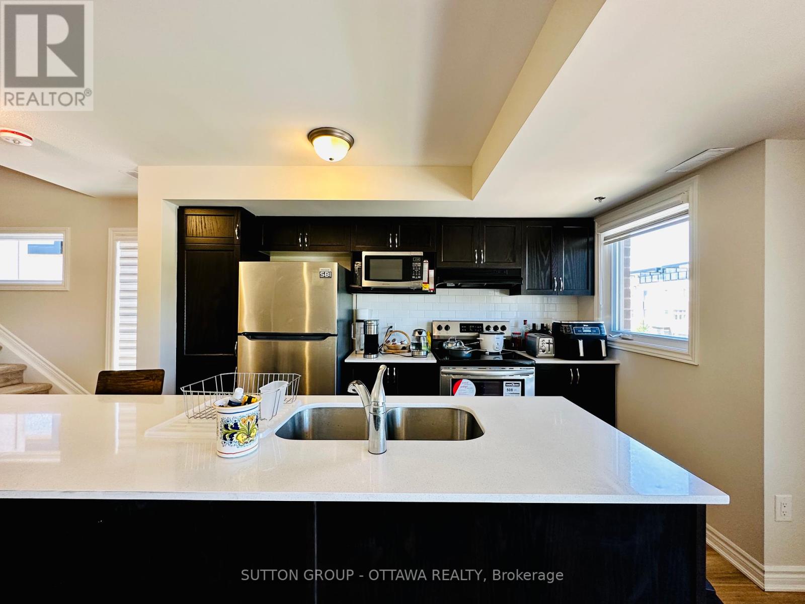 Stunning built Mattamy home in Wateridge Village! UPPER END UNIT 2-Beds, 2-Baths with 1 outdoor parking. Loads of natural light & luxury laminate flooring thru the home. Open concept bright living & dining room on main level. Kitchen with 4 pieces high-end stainless-steel appliances, quartz countertop and breakfast bar area. Two good sized bedrooms, one full bath and in-unit laundry complete the upper level. Master bedroom with private balcony. 3-piece full bath with double sink quartz countertop, and rainfall shower. The 3rd level provides your own PRIVATE ROOF TOP TERRACE for your entertainment and relaxation! Electric Vehicle Charging Stations are available in the area. This PRIME LOCATION is close to the Montfort Hospital, CSIS, CSEC, parks, paths and nature trails, amenities, shopping center, highway, public transit, schools, Ottawa University, and downtown. (id:49063)