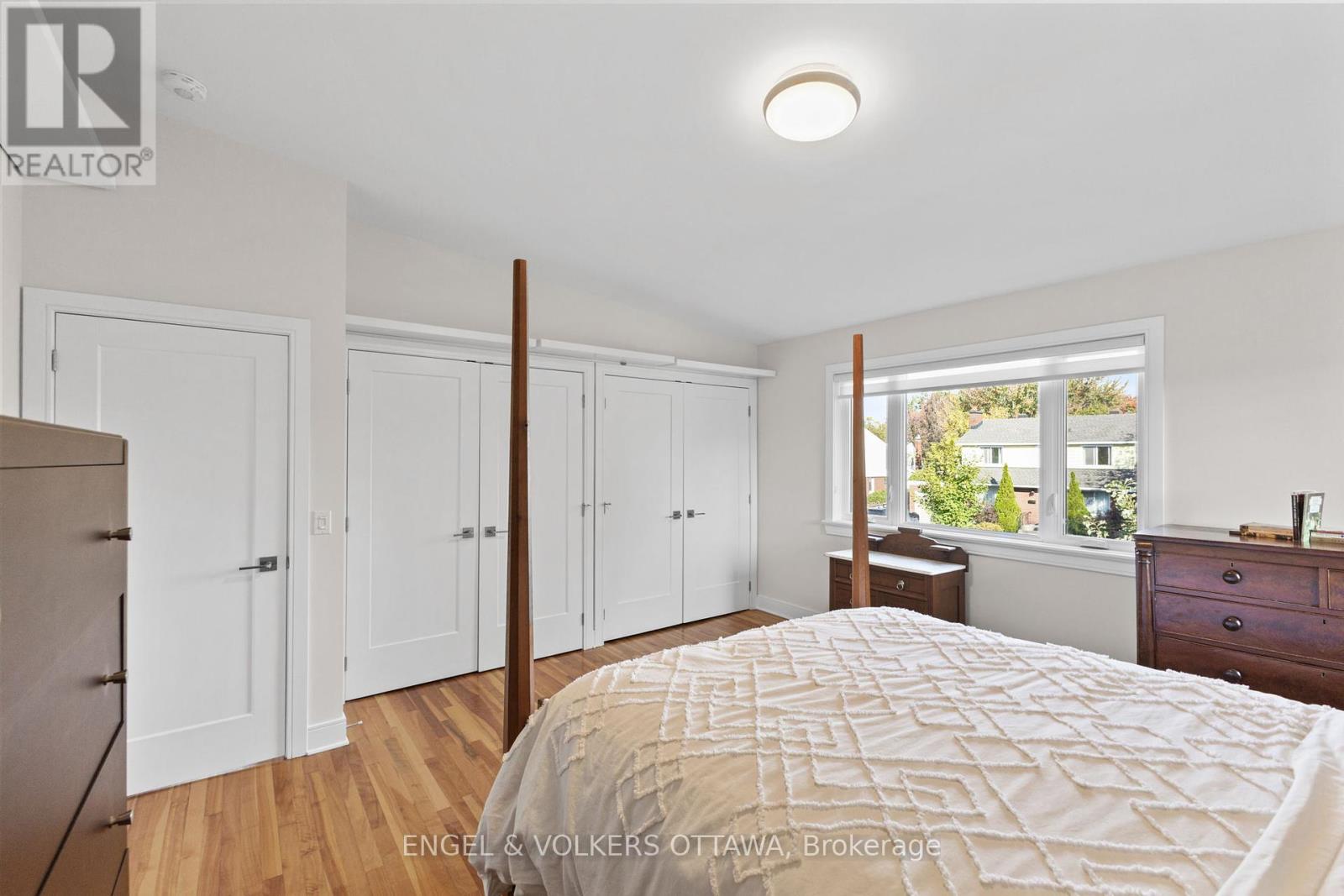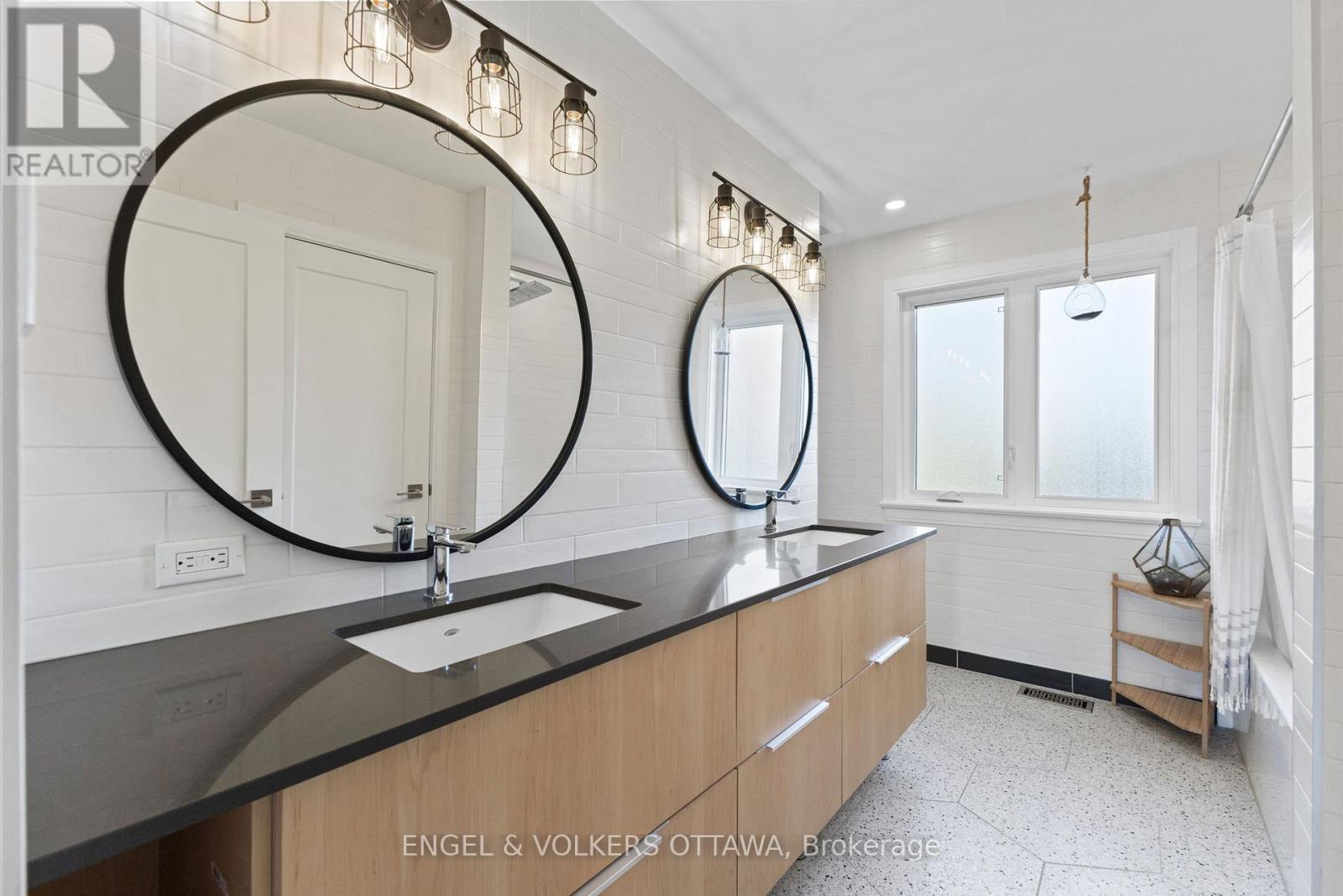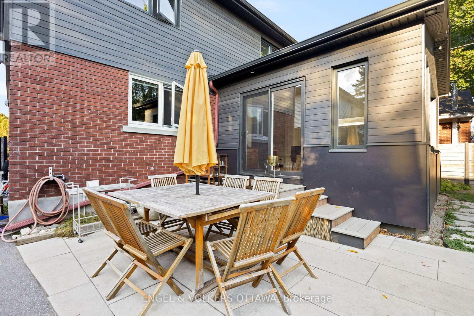 This tastefully updated family home in Alta Vista features elements of modern design without sacrificing comfort and day-to-day functionality. The main level has an inviting open-concept layout, starting with the foyer with large tile flooring, recessed lighting, and a stylish powder room. The expansive living room is highlighted by a full-height tiled fireplace, built-in shelving, and large windows that overlook the front yard. The adjoining dining area features a statement linear light fixture and rich hardwood flooring that flows throughout the level. The contemporary kitchen showcases two-tone cabinetry, quartz countertops, a waterfall peninsula with seating, and stainless steel appliances. At the rear, the sun-filled south-facing family room impresses with vaulted ceilings, multiple full-height windows, and sliding glass doors opening to the backyard, creating a wonderful space during all times of the day. Upstairs, the spacious primary bedroom features double closets and treetop views, while two additional bedrooms make for great children's or guest rooms. The 5-piece bathroom has a double vanity with quartz counters, wood cabinetry, geometric flooring, and a tub/shower combination. The finished lower level has a large recreation room with recessed lighting, a functional bedroom with an above-grade window, and a full bathroom with a glass shower and the laundry units. Outside, the private, low-maintenance backyard has an in-ground pool, stone patio, and mature trees offering privacy and shade. This property offers a family-friendly lifestyle with Billings Bridge, Lansdowne Park, and the Ottawa Hospital campuses nearby within just minutes. Evening strolls along these tree-lined streets await you! (id:49063)