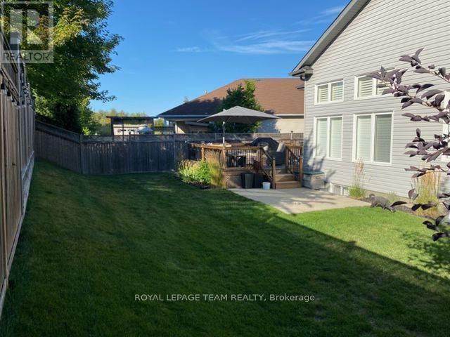 Welcome to 834 Rockson Crescent - a highly sought-after custom-built Metric home offering 3+1 bedrooms and 3 full bathrooms, thoughtfully designed for both comfort and style. From the moment you enter, you're greeted by a bright and inviting foyer with tiled flooring that transitions seamlessly into rich hardwood throughout the main living space. Soaring 12-foot cathedral ceilings create an airy, open atmosphere that enhances the home's natural light and architectural presence. The open-concept kitchen and living area is beautifully appointed with elegant window shutters, a striking natural gas stone fireplace, and a functional island with abundant counter space. A rare oversized walk-in pantry provides exceptional storage and everyday convenience. The main level also features convenient laundry, inside access to the garage, neutral tones throughout, two linen closets, and three generously sized bedrooms. The serene primary retreat offers 9-foot ceilings, a walk-in closet, and a spa-inspired ensuite complete with double sinks, a spacious walk-in shower, and slate-colored ceramic flooring. Upgrades include 33" doors for mobility (with exception of 2 front bedrooms). Enhanced soundproof insulation in select main-floor walls and the lower level adds an extra layer of comfort and privacy. The finished lower level, complete with Berber carpeting, includes a fourth bedroom with a generous closet, a full 3-piece bathroom, and a large recreation room ideal for a home gym, media space, or flexible family living. Lower level has rough-in for wet bar or kitchenette. Step outside to an expansive back deck perfect for summer entertaining, along with a functional patio area and fully fenced backyard for added privacy. This property offers a seamless blend of functionality, warmth, and timeless appeal in a desirable neighborhood of Stittsville on a private crescent. ** This is a linked property.** (id:49063)