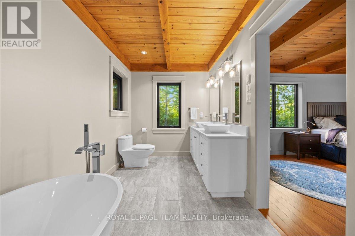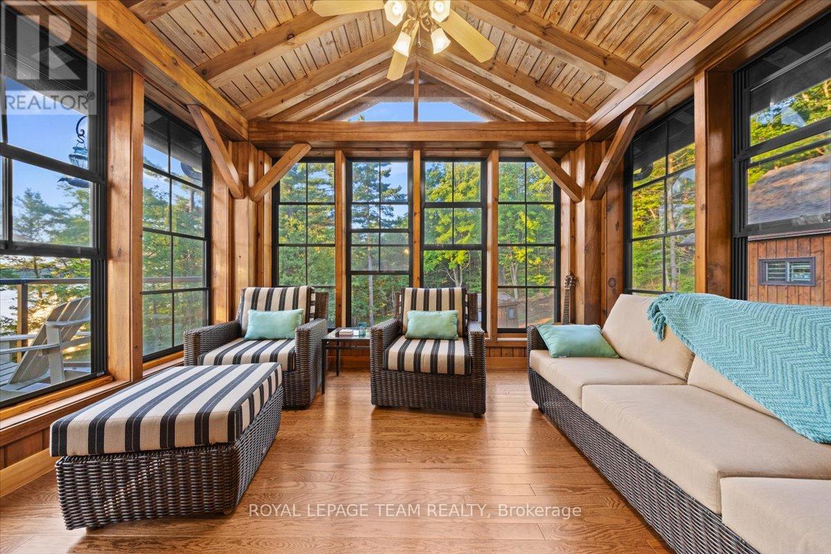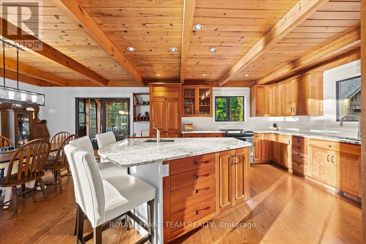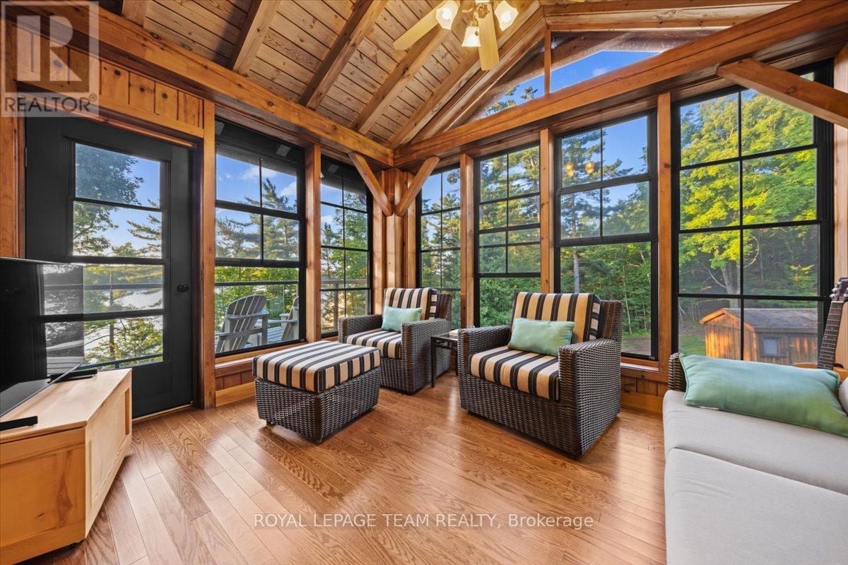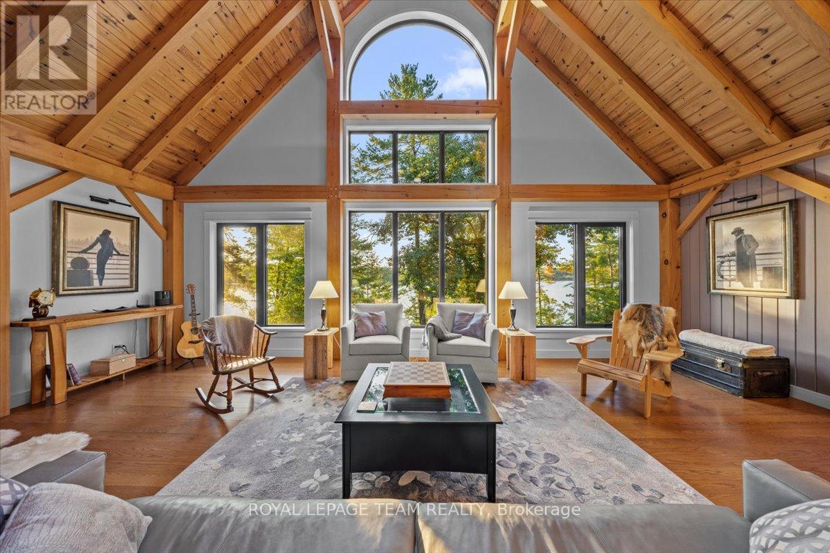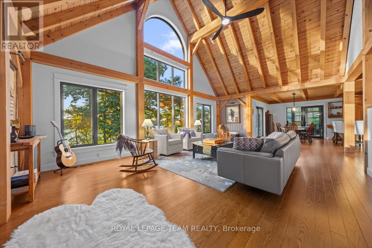 Welcome to "Brooks Beach" on beautiful Crow Lake. From sunrise to sunset, this unique property glows both inside and out. Flooded with natural light, incredible custom crafted designs and breathtaking views, this resort-like, executive lake house is where luxury meets comfort and privacy. Picture being nestled in a custom timber frame home on a high and dry 27 acres boasting 998ft of dream-like waterfront featuring your very own large private natural sand beach. Near the upper level of the watershed, Crow Lake is one of Ontarios highest quality lakes that also offers access to expansive Bobs Lake for even more world-class outdoor recreation. This amazing property has its own boat launch as well as a picturesque waterfall cascading down into a meandering creek running the entire length down one side of the property. And with over 500 acres of almost completely unoccupied, completely serene Crown land across from you, this lake and this incredible lake home offer a once in a lifetime opportunity in the heart of Canadas Frontenacs. (id:49063)