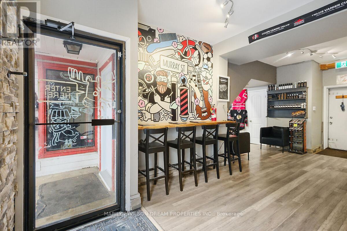 Rare opportunity in the heart of the ByWard Market. Fully tenanted mixed-use building and an additional freestanding commercial building. Two prime retail spaces and two extensively renovated 2 bedroom apartments. Well maintained property. Seller will consider a VTB. Zoning is MD2 S72 Mixed-Use Downtown Zone which allows for further development. Will provide plans for additional building. 89 Murray is a three-story building with ground floor retail and two residential units on the upper floor, representing 2700 sq ft. 91 Murray is a separate unique one-story building at the rear of the property with 1400 sq ft. 89 Murray - New asphalt shingle roof 2024. 200 amp main distribution panel, with each unit separately metered. One forced air gas fired furnace for the commercial ground floor unit & one for the two apartment units. 89 Murray Residential - Two 2 bedroom identical units have been extensively updated. Two storey apartments with hardwood floors and 6 appliances. Quartz countertops & newer cabinetry. Modern baths with gorgeous showers. Currently rented for $2000 each. Landlord pays water & heat. 89 Murray Retail - This space is air conditioned. The Barber Shop has been leased for 7 years. $3407 + additional expenses. 91 Murray Retail - The interior consists of 3 open living spaces, one with a wet bar area. There is an additional office, a bedroom area and a 3 piece bath. Extensively renovated in 2011 with new exterior EFIS, new roof, plumbing, interior walls, etc. New HVAC system installed 2024. Central air & forced air gas furnace. Separately metered for hydro & gas. Leased for $2825 + common expenses (including property taxes, snow clearing & maintenance). 2 non-conforming parking spaces. One residential unit will be vacant upon possession, as it is currently owner occupied. One of the Ottawa Mayor's top priorities for 2025 is to revitalize the ByWard Market by enacting a $129M plan before 2027. 48 hrs notice for showings & 24 hrs irrev on offers. (id:49063)
