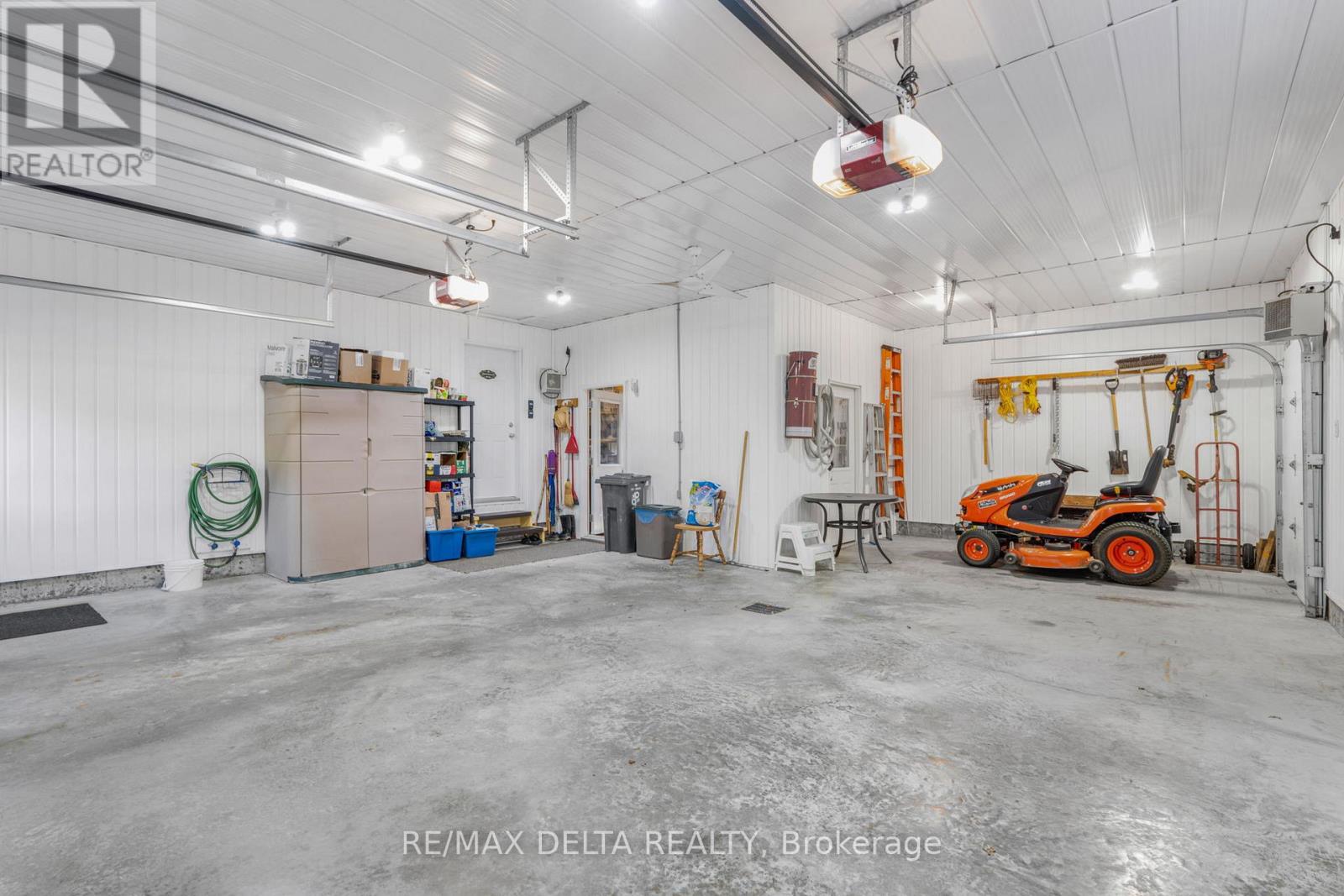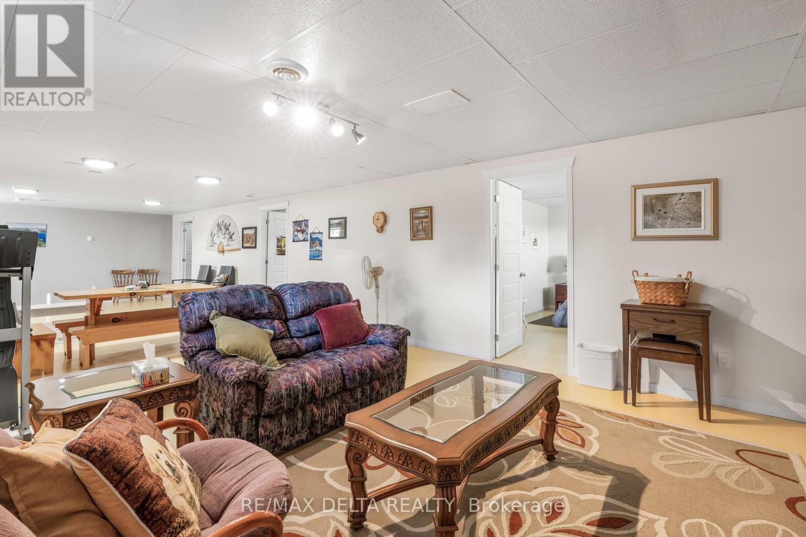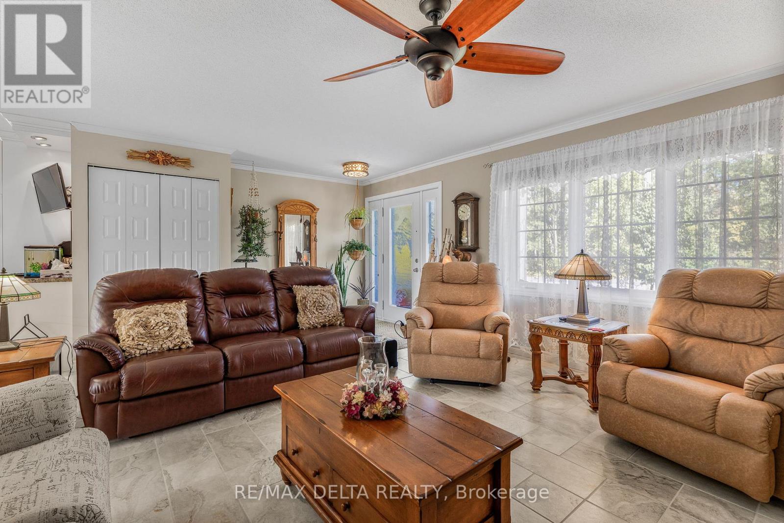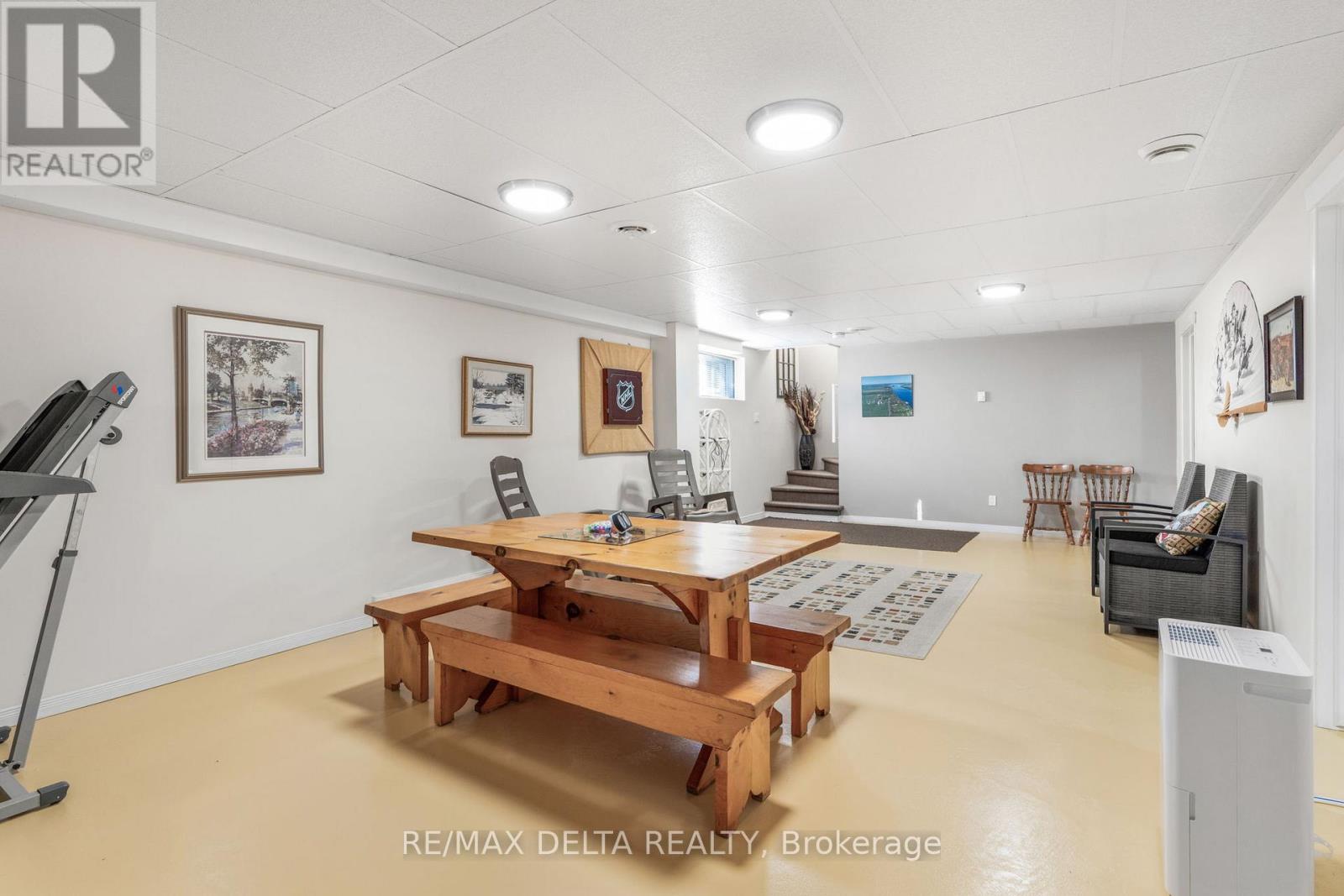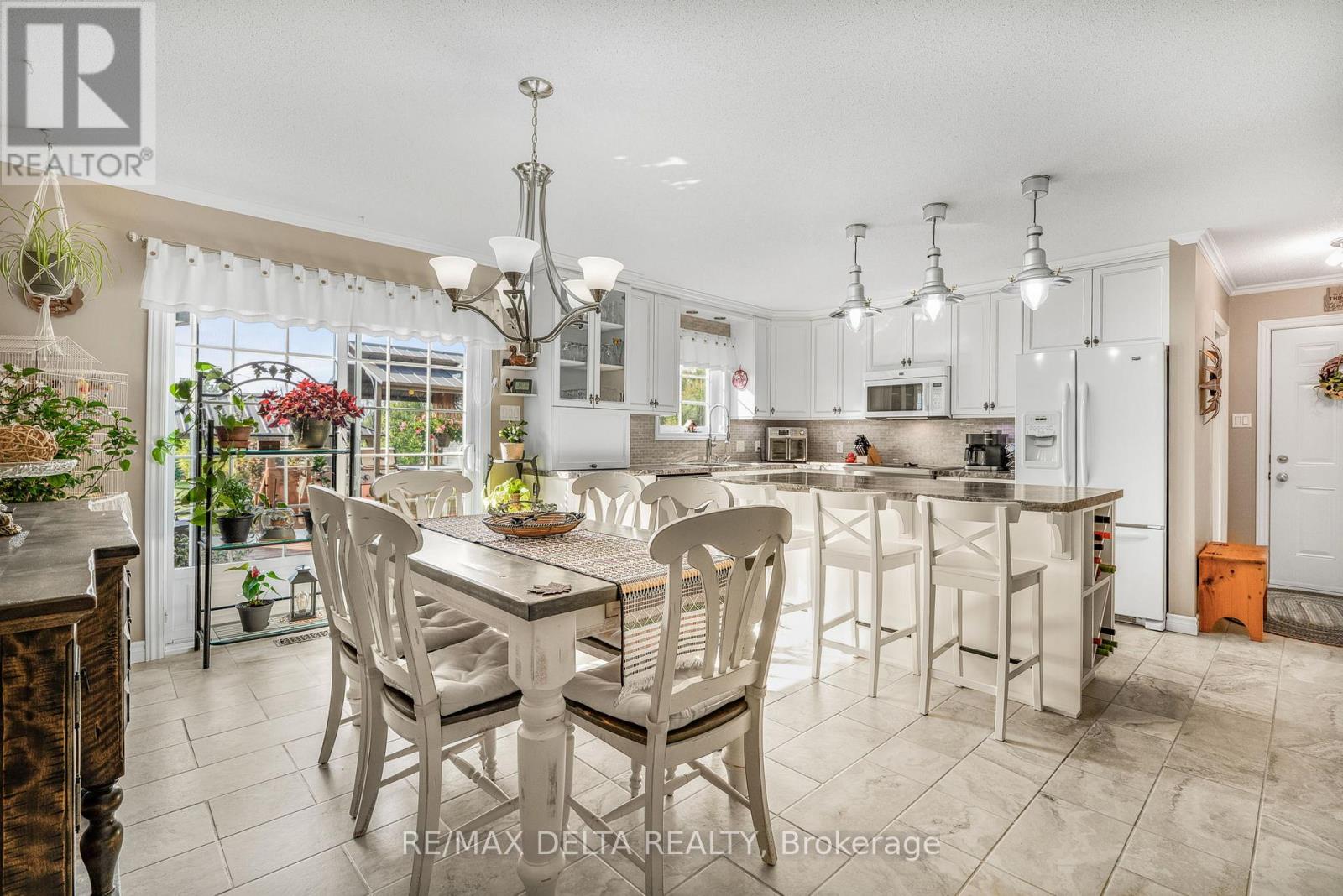 Welcome to your dream country retreat! This beautifully maintained bungalow offers the perfect balance of comfort, privacy, and spacious living both indoors and out. Set on 1.05 acres with no rear neighbours, this property is ideal for those seeking peace and quiet without sacrificing convenience. Inside, an open concept design creates a bright, airy flow. The inviting living room features a propane fireplace, elegant crown moulding, and large windows that flood the space with natural light. At the heart of the home, the kitchen boasts timeless white cabinetry, a large island with seating, and seamless connection to the dining area, perfect for family meals and entertaining. The main floor offers 2 comfortable bedrooms, including a generous primary suite complete with a spa-like ensuite featuring a clawfoot tub and double vanity. A second full bathroom and a convenient laundry room add to the functionality of this level. Downstairs, the fully finished basement nearly doubles your living space, offering a large family room, recreation area, an additional bedroom and abundant storage. Step outside to enjoy a paved driveway, attached insulated double garage, gazebo, two garden sheds, and a beautifully landscaped yard with plenty of space for entertaining or simply relaxing in nature. A charming creek runs through the property, connecting to the river and offering the perfect spot to launch a kayak or paddle board for peaceful days on the water. Additional features include a central vacuum system, air exchanger, water treatment system, and a large workshop area, perfect for hobbyists or DIY enthusiasts. This home is truly move-in ready and offers a rare opportunity to enjoy serene country living. (id:49063)