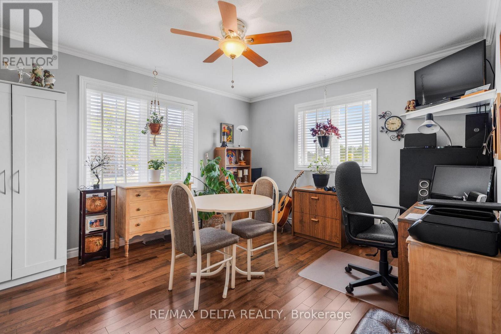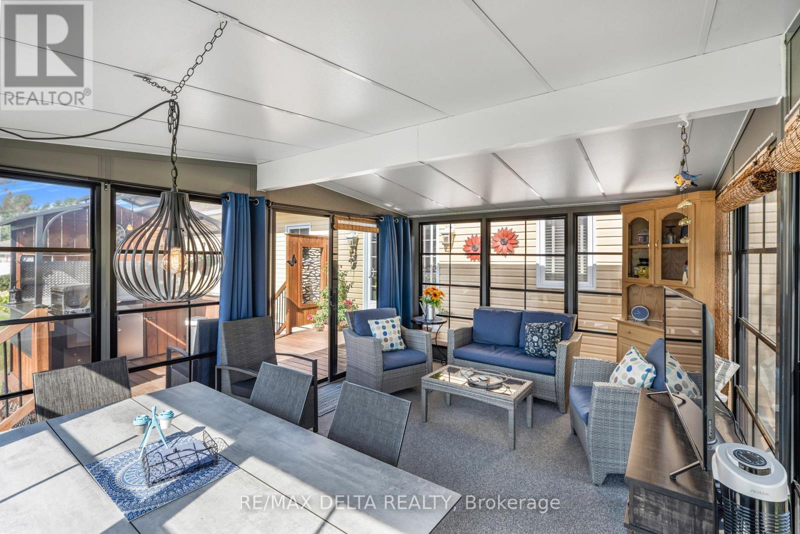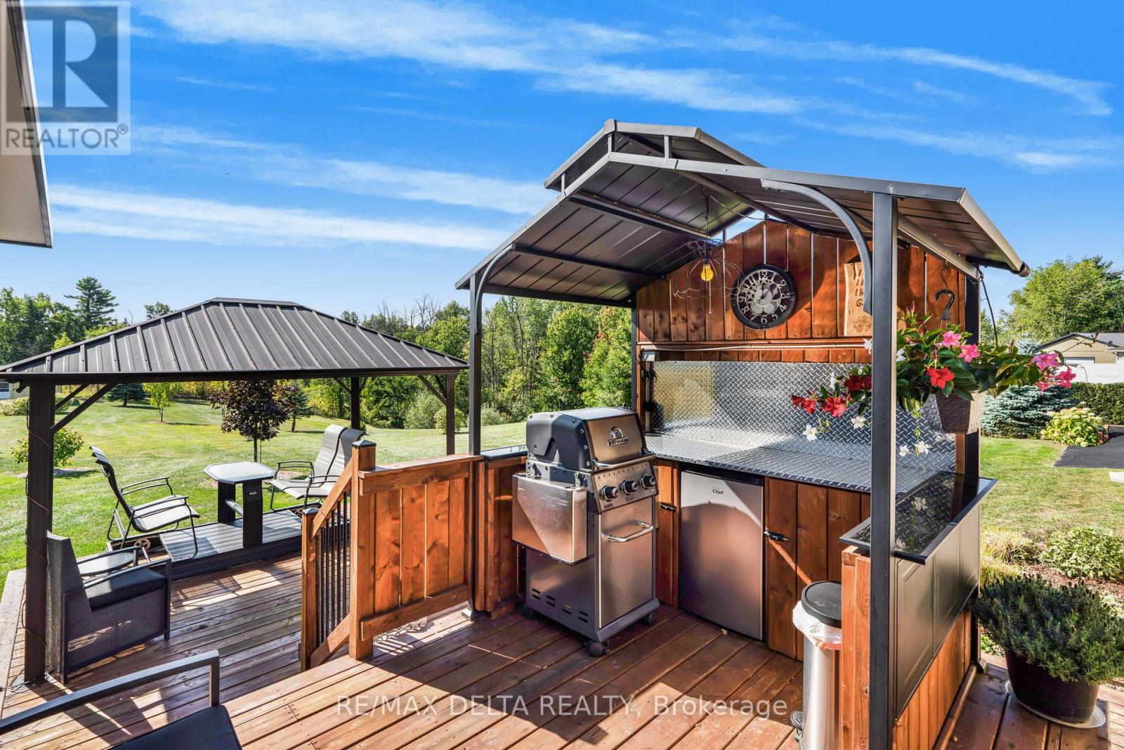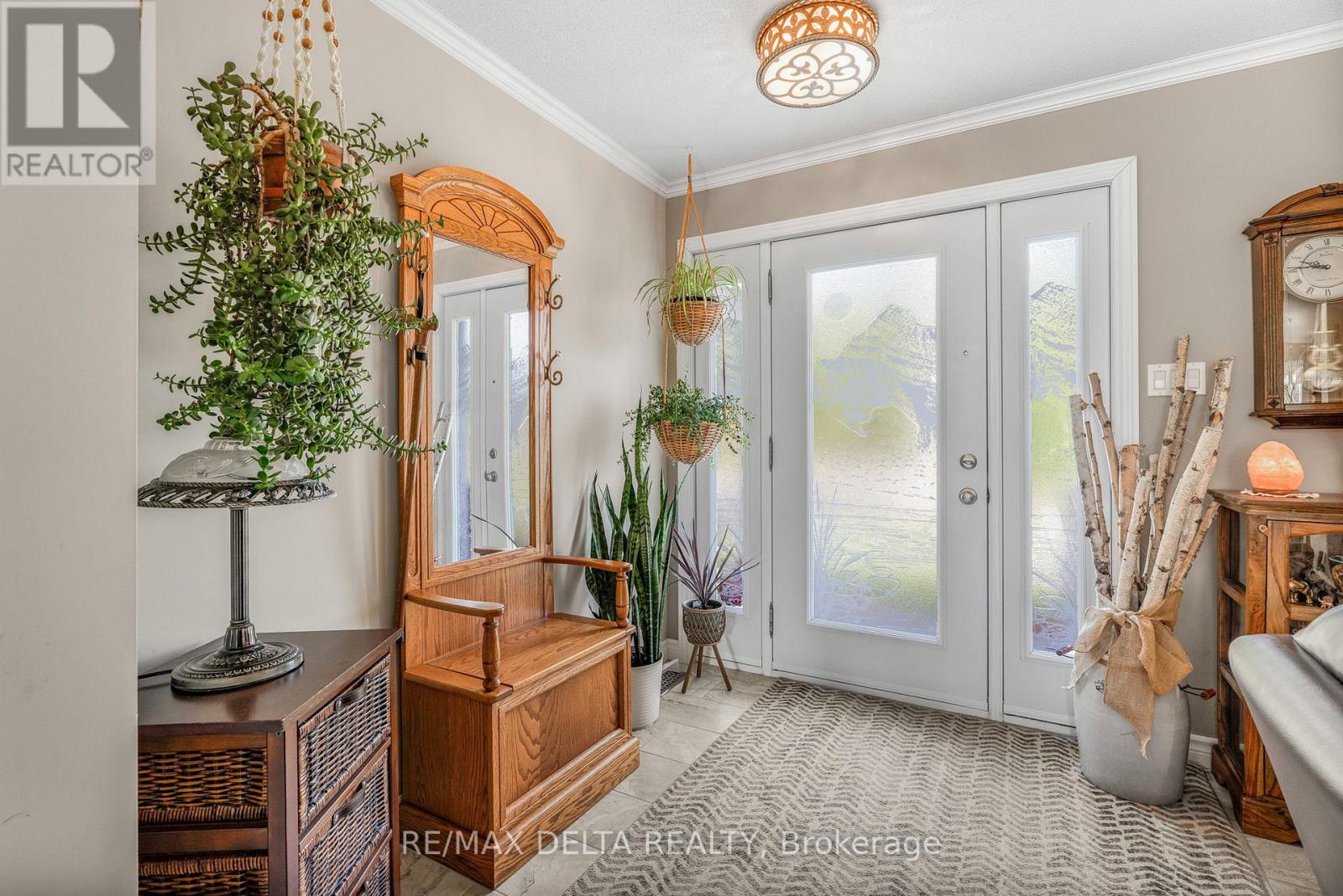 Welcome to your dream country retreat! This beautifully maintained bungalow offers the perfect balance of comfort, privacy, and spacious living both indoors and out. Set on 1.05 acres with no rear neighbours, this property is ideal for those seeking peace and quiet without sacrificing convenience. Inside, an open concept design creates a bright, airy flow. The inviting living room features a propane fireplace, elegant crown moulding, and large windows that flood the space with natural light. At the heart of the home, the kitchen boasts timeless white cabinetry, a large island with seating, and seamless connection to the dining area, perfect for family meals and entertaining. The main floor offers 2 comfortable bedrooms, including a generous primary suite complete with a spa-like ensuite featuring a clawfoot tub and double vanity. A second full bathroom and a convenient laundry room add to the functionality of this level. Downstairs, the fully finished basement nearly doubles your living space, offering a large family room, recreation area, an additional bedroom and abundant storage. Step outside to enjoy a paved driveway, attached insulated double garage, gazebo, two garden sheds, and a beautifully landscaped yard with plenty of space for entertaining or simply relaxing in nature. A charming creek runs through the property, connecting to the river and offering the perfect spot to launch a kayak or paddle board for peaceful days on the water. Additional features include a central vacuum system, air exchanger, water treatment system, and a large workshop area, perfect for hobbyists or DIY enthusiasts. This home is truly move-in ready and offers a rare opportunity to enjoy serene country living. (id:49063)