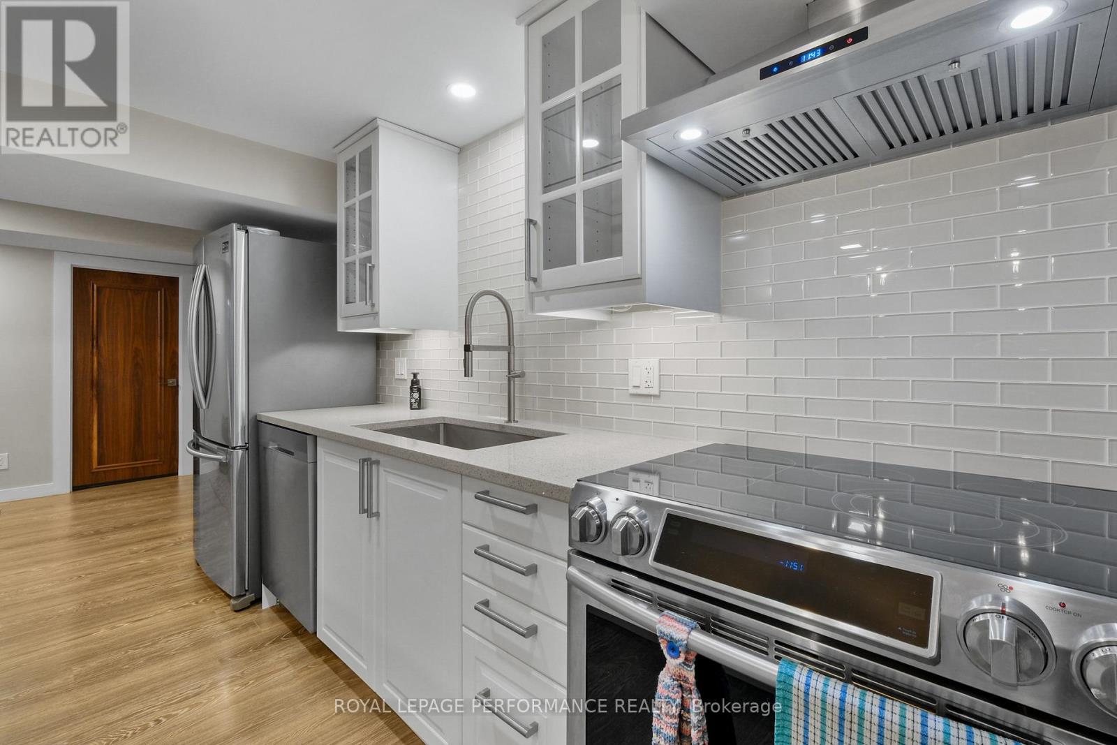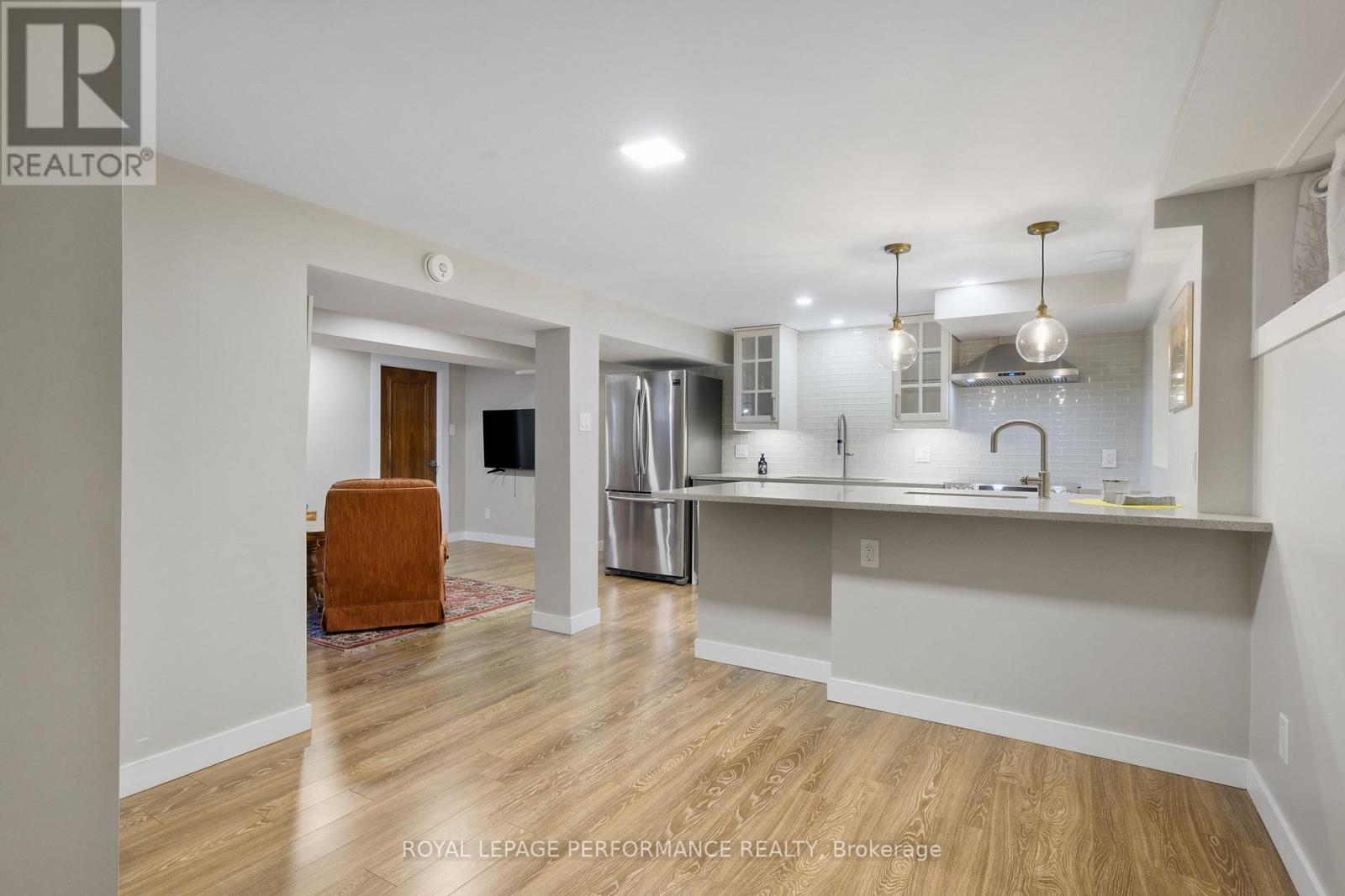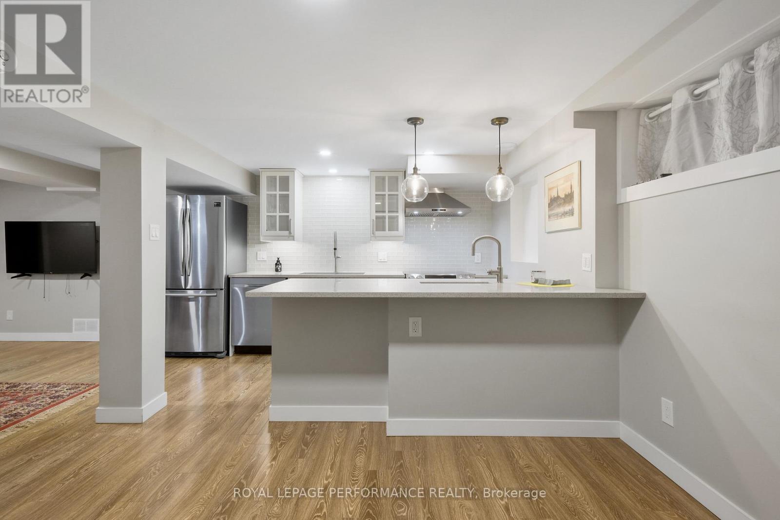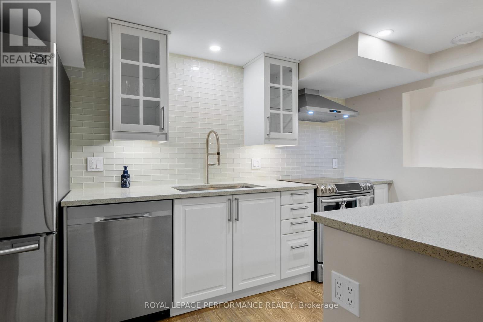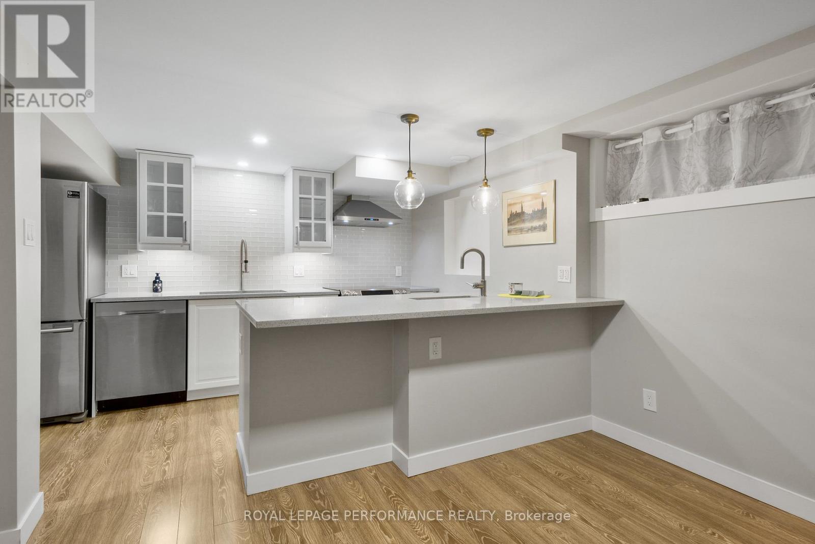 Welcome to 926 Charleswood Avenue basement unit. This brand new 1 bedroom + den apartment is conveniently located close to Montfort Hospital and is a 15 minute drive to downtown Ottawa. The kitchen comes with ample storage, stainless steel appliances(including dishwasher), quartz countertops, and breakfast bar. It is next to an open concept living area perfect for relaxing and entertaining. Next to the living area is a den that could be a flexible office space. The bathroom has two sinks, bath tub and shower. The one bedroom has a wood feature wall and closet to house your belongings. The unit has in-unit laundry, two tandem parking spots, and it can be accessed through a side entrance. Tenant pays hydro, water and gas. (id:49063)