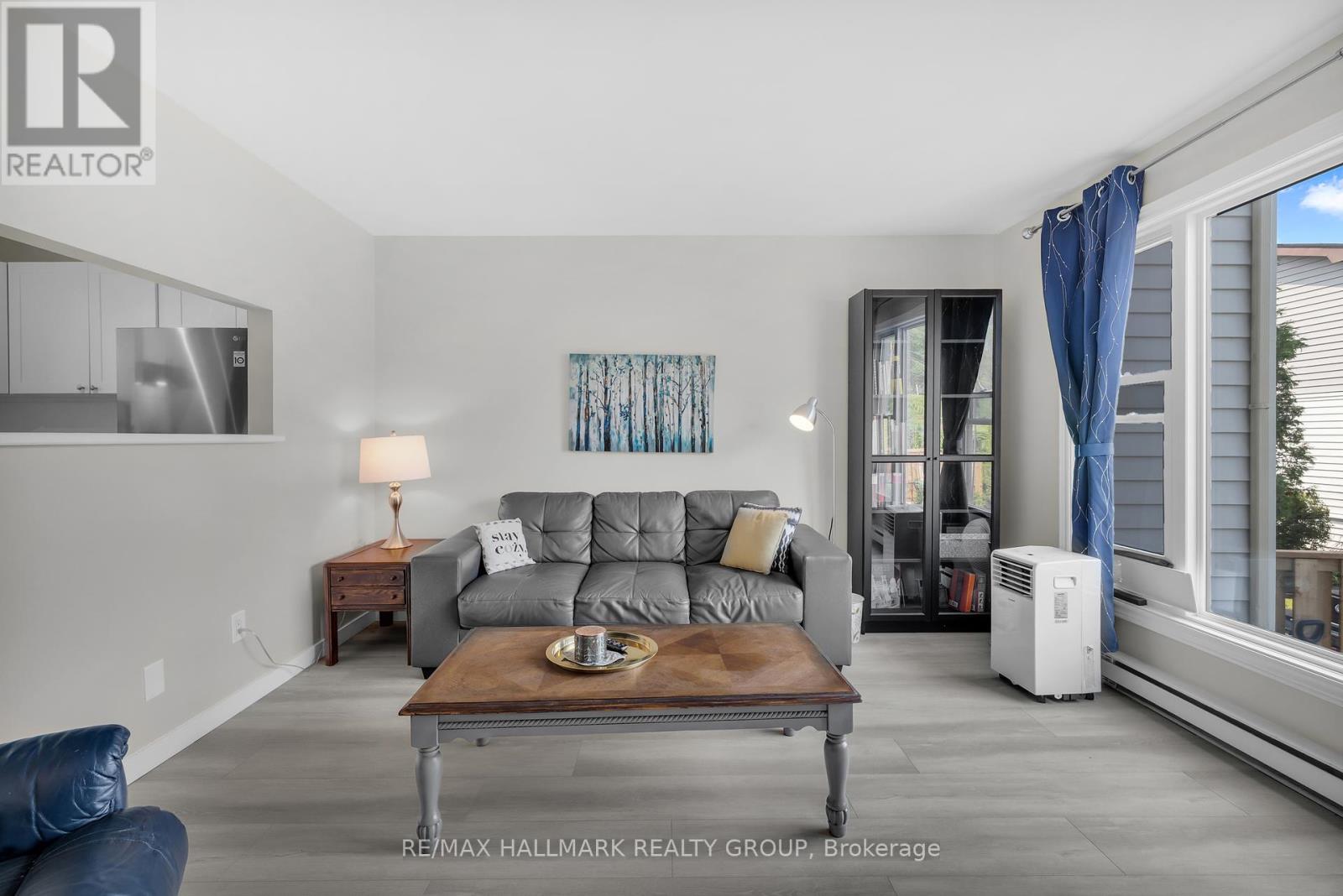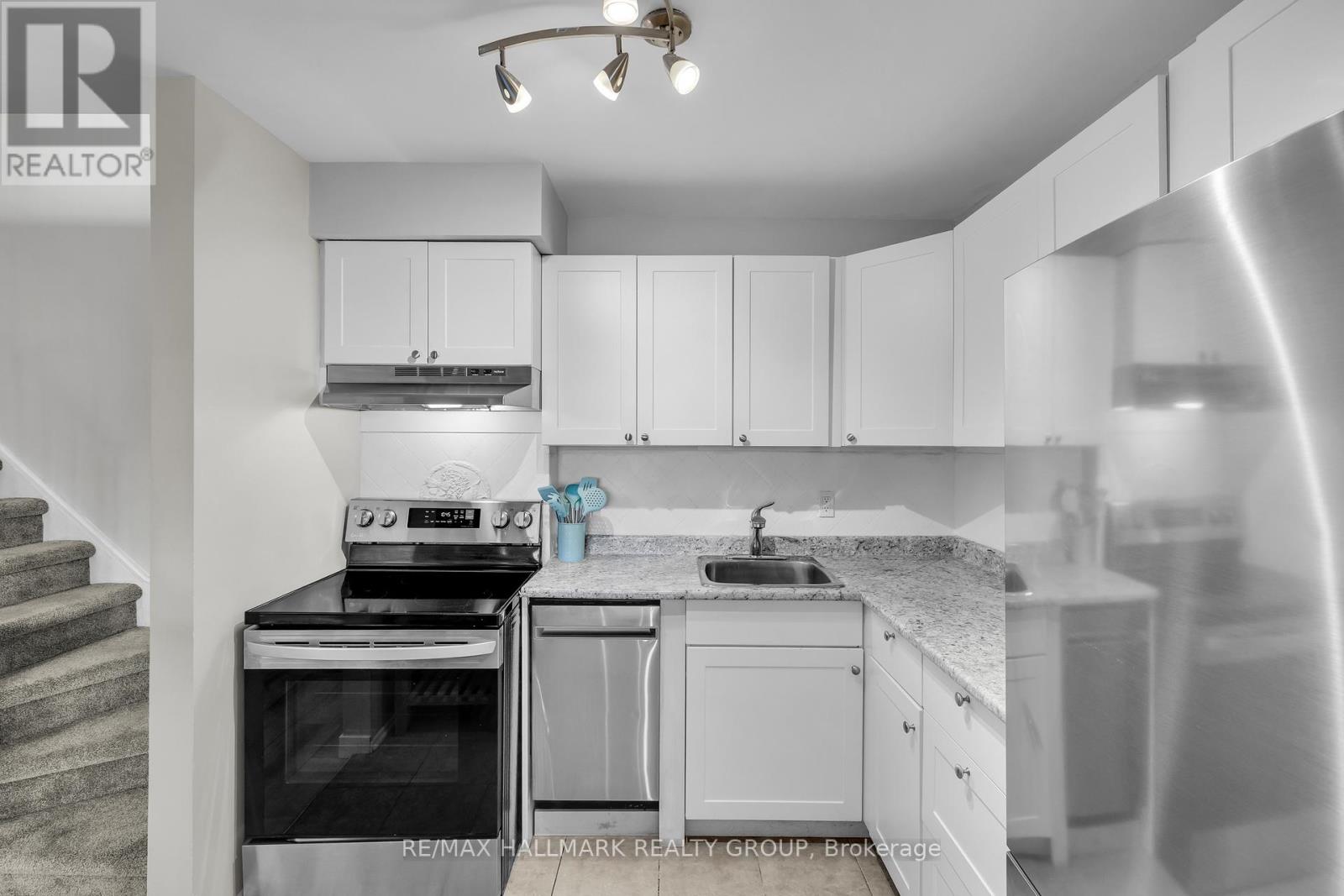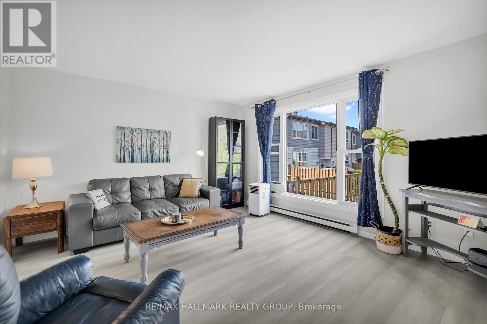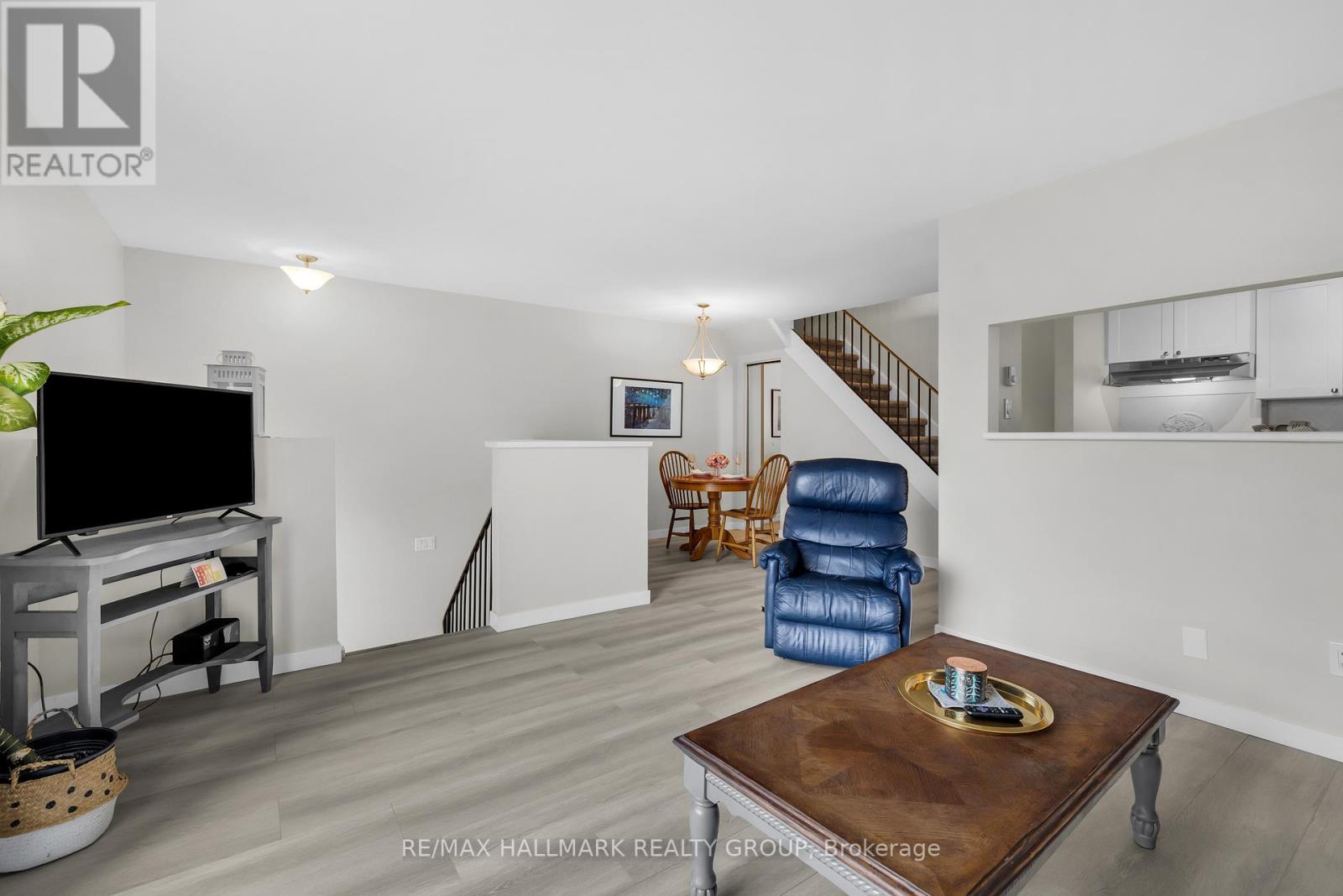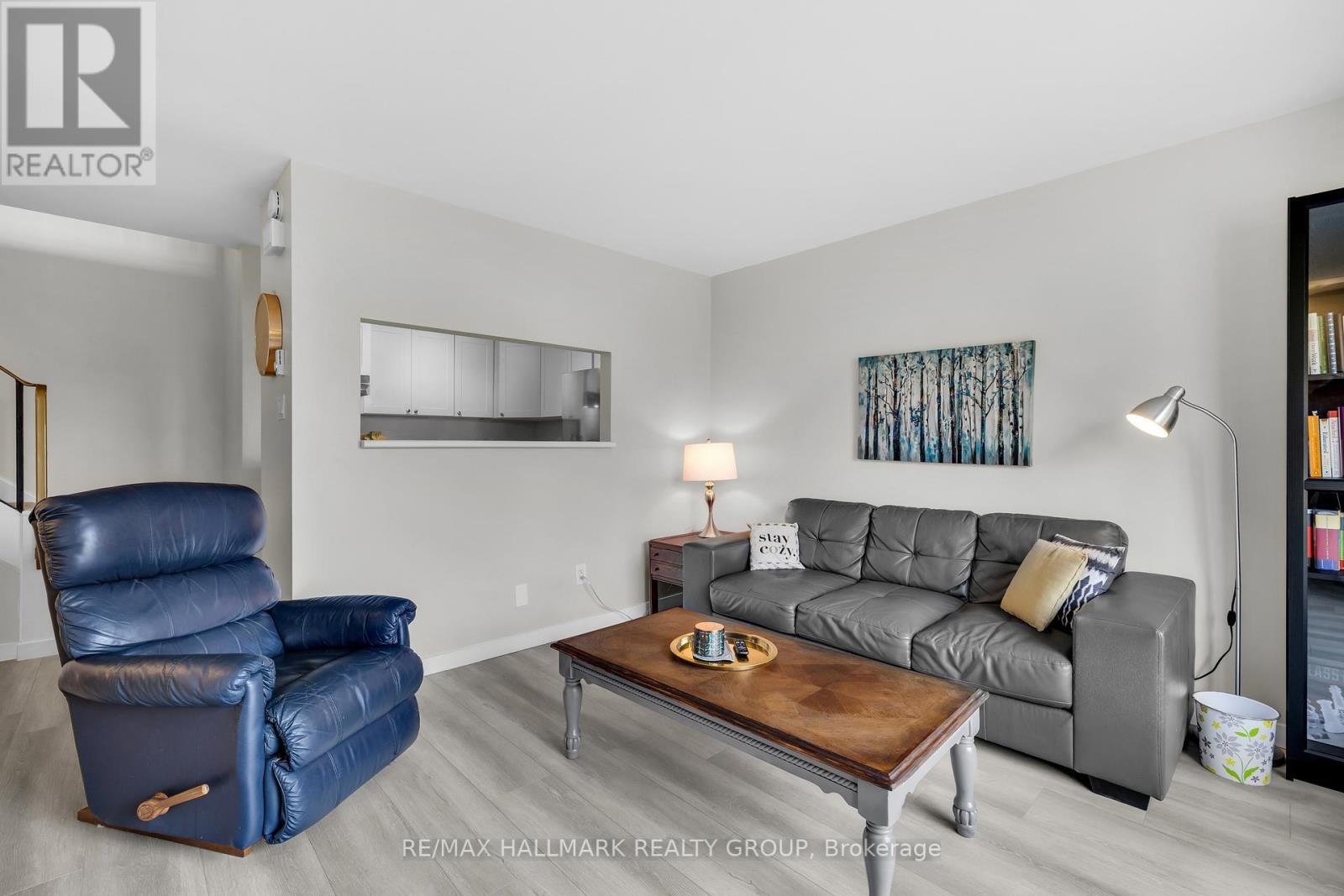 Welcome to this inviting townhouse condo, perfectly situated in a highly sought-after location close to Bayshore, IKEA, Home Depot, and Loblaws. Thoughtfully updated and move-in ready, this home offers the ideal blend of comfort, functionality, and style. Step into a spacious kitchen featuring ample cabinetry for generous storage and a sleek design. A convenient pass-through connects to the open-concept living and dining area, creating a natural flow that's perfect for entertaining or relaxed everyday living. Upstairs, you'll find two large bedrooms, each offering a quiet retreat with plenty of closet space, along with a well-appointed full bathroom.The finished basement adds valuable living space with a cozy rec room ideal for a home gym, playroom, or media area as well as a third bedroom. A convenient partial bathroom completes the lower level.Recent updates include windows and front door (2023), all major appliances, and bathroom renovations. Freshly painted with new flooring (2025), this is a fantastic opportunity for first-time buyers, investors, or anyone seeking low-maintenance living in a prime location. (id:49063)