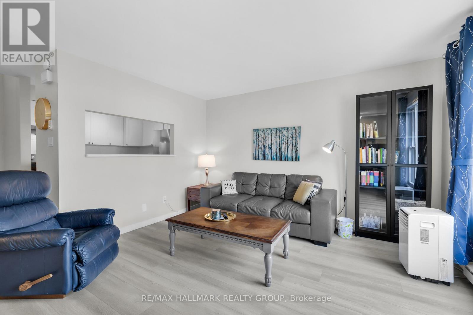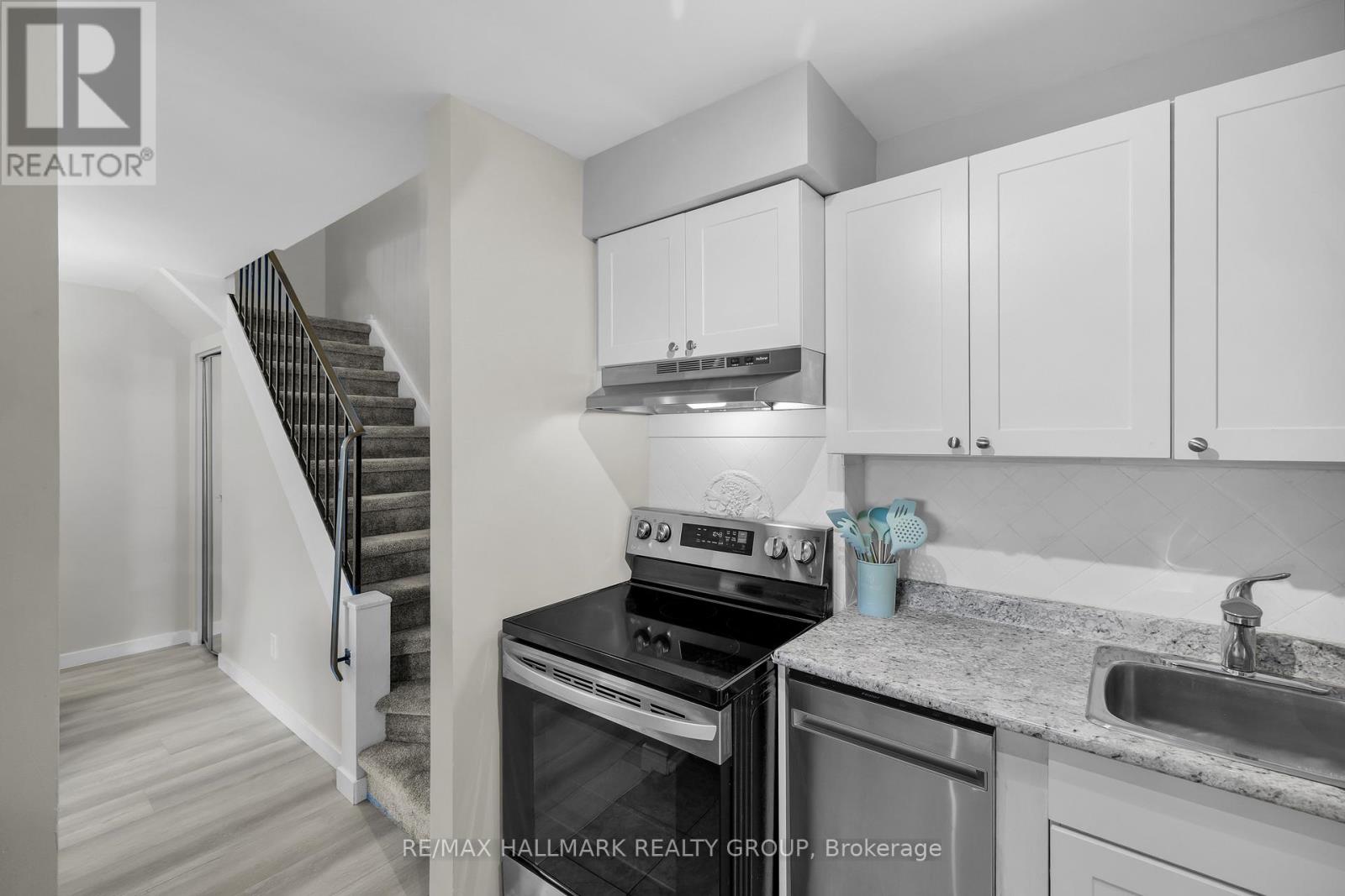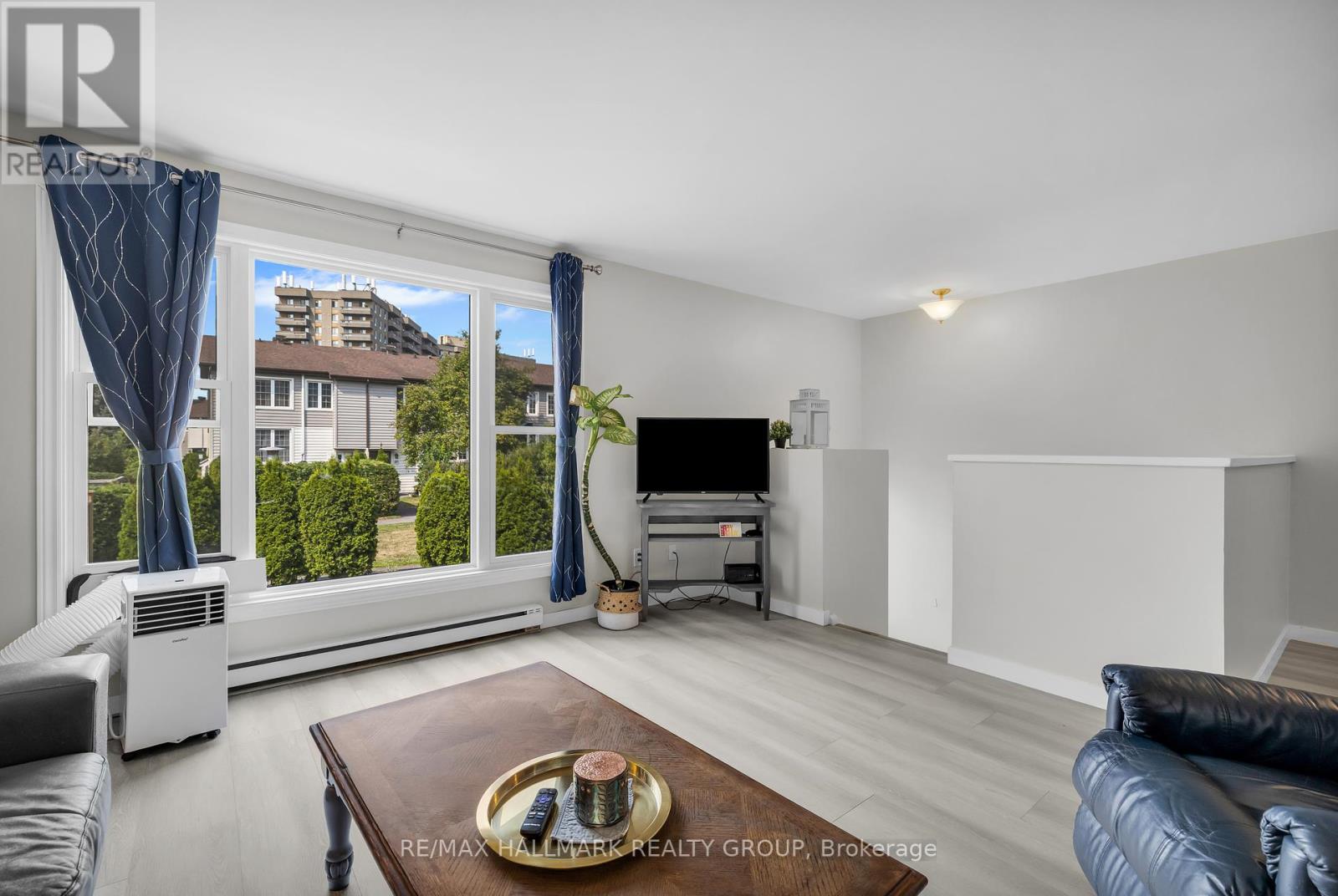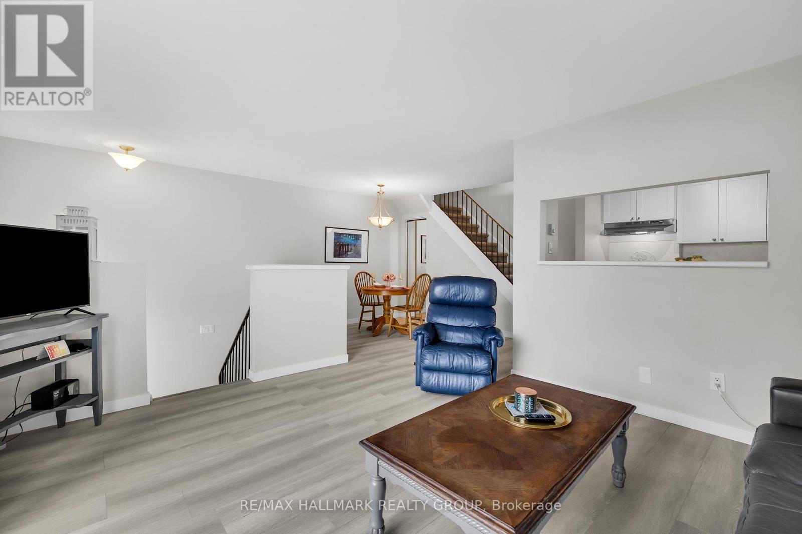 Welcome to this inviting townhouse condo, perfectly situated in a highly sought-after location close to Bayshore, IKEA, Home Depot, and Loblaws. Thoughtfully updated and move-in ready, this home offers the ideal blend of comfort, functionality, and style. Step into a spacious kitchen featuring ample cabinetry for generous storage and a sleek design. A convenient pass-through connects to the open-concept living and dining area, creating a natural flow that's perfect for entertaining or relaxed everyday living. Upstairs, you'll find two large bedrooms, each offering a quiet retreat with plenty of closet space, along with a well-appointed full bathroom.The finished basement adds valuable living space with a cozy rec room ideal for a home gym, playroom, or media area as well as a third bedroom. A convenient partial bathroom completes the lower level.Recent updates include windows and front door (2023), all major appliances, and bathroom renovations. Freshly painted with new flooring (2025), this is a fantastic opportunity for first-time buyers, investors, or anyone seeking low-maintenance living in a prime location. (id:49063)