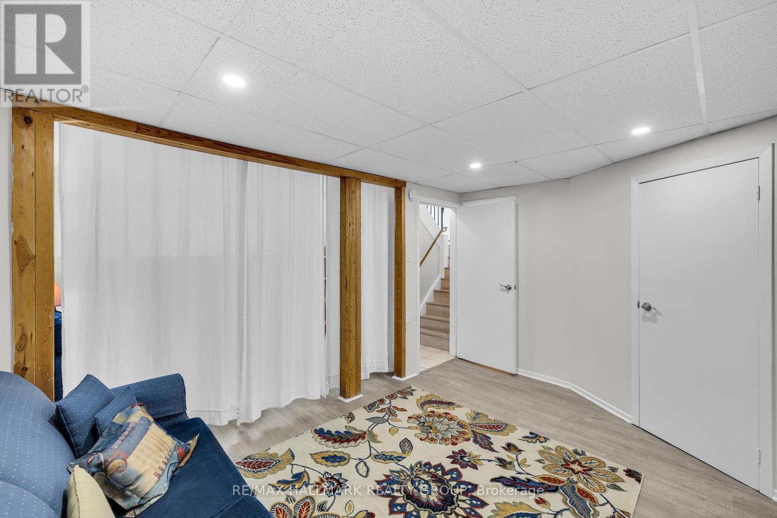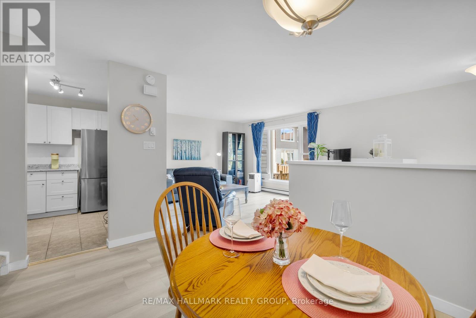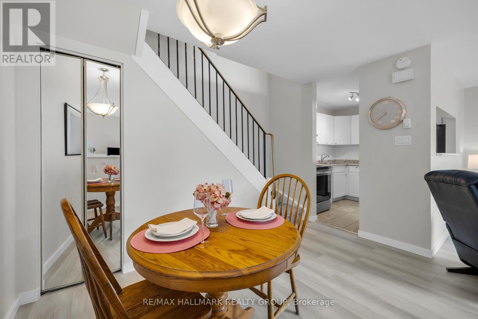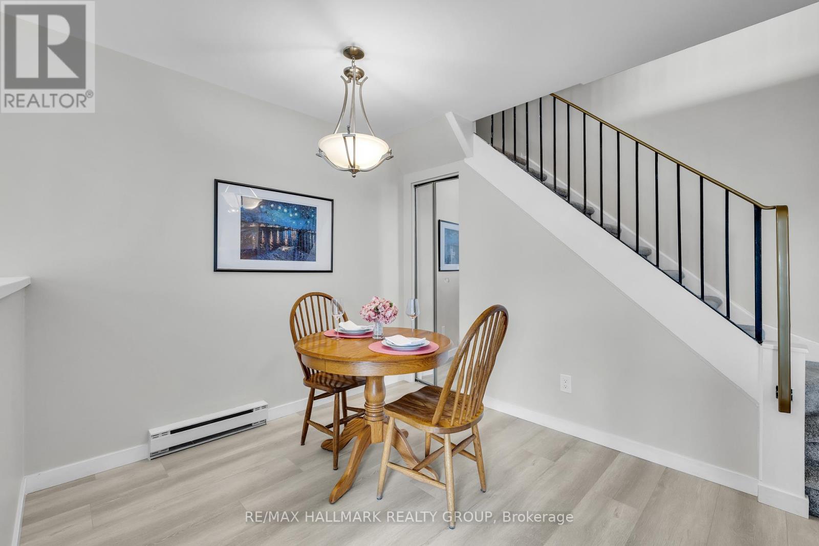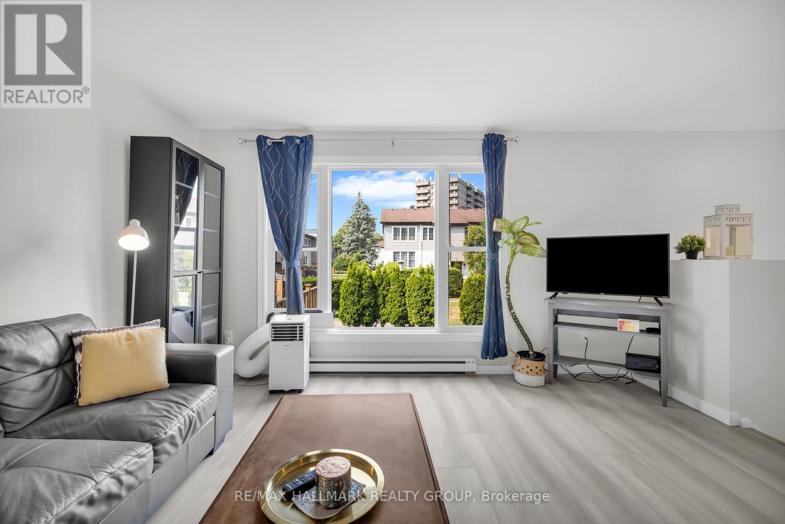 Welcome to this inviting townhouse condo, perfectly situated in a highly sought-after location close to Bayshore, IKEA, Home Depot, and Loblaws. Thoughtfully updated and move-in ready, this home offers the ideal blend of comfort, functionality, and style. Step into a spacious kitchen featuring ample cabinetry for generous storage and a sleek design. A convenient pass-through connects to the open-concept living and dining area, creating a natural flow that's perfect for entertaining or relaxed everyday living. Upstairs, you'll find two large bedrooms, each offering a quiet retreat with plenty of closet space, along with a well-appointed full bathroom.The finished basement adds valuable living space with a cozy rec room ideal for a home gym, playroom, or media area as well as a third bedroom. A convenient partial bathroom completes the lower level.Recent updates include windows and front door (2023), all major appliances, and bathroom renovations. Freshly painted with new flooring (2025), this is a fantastic opportunity for first-time buyers, investors, or anyone seeking low-maintenance living in a prime location. (id:49063)